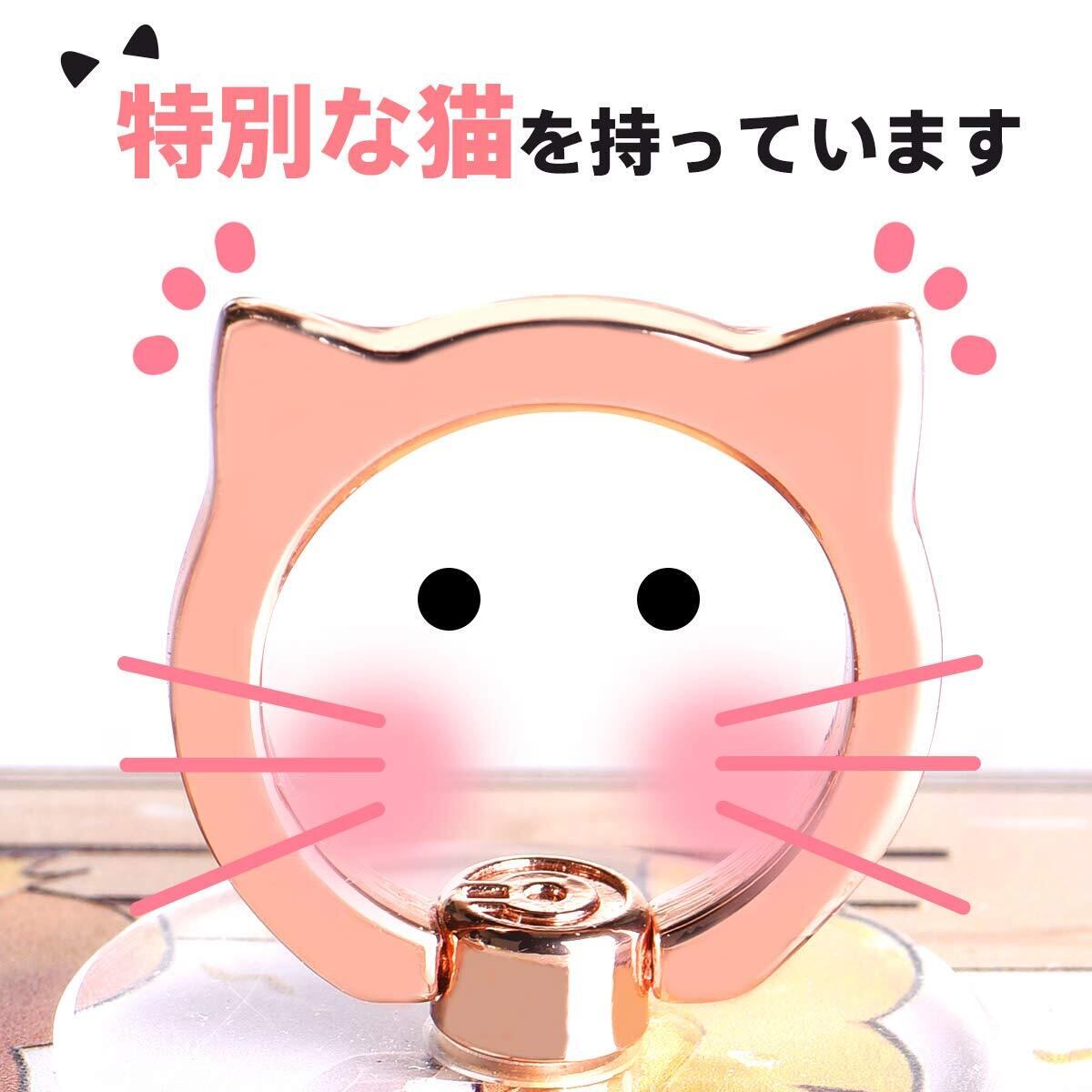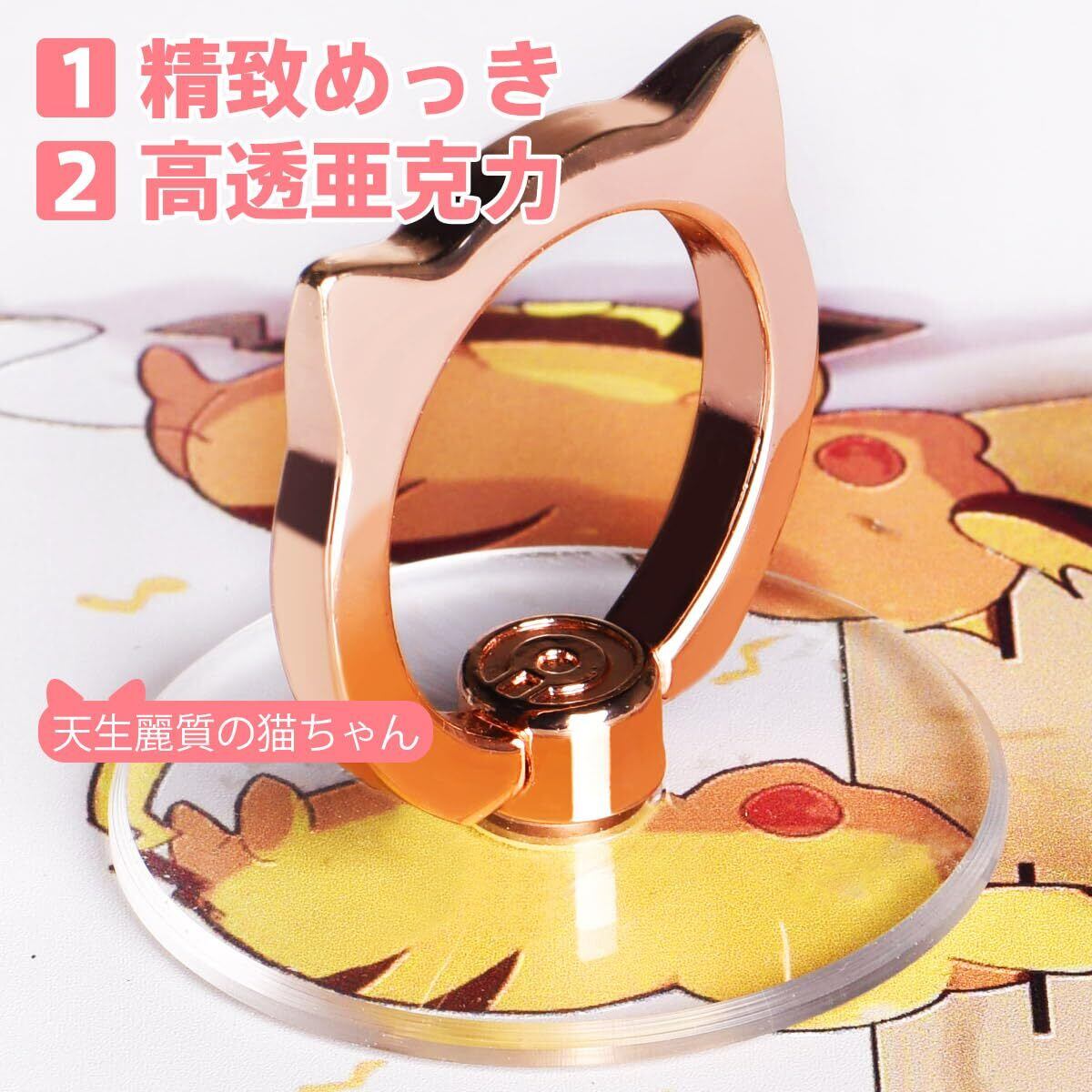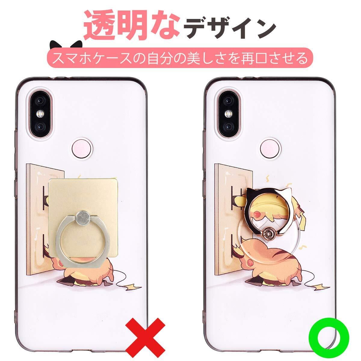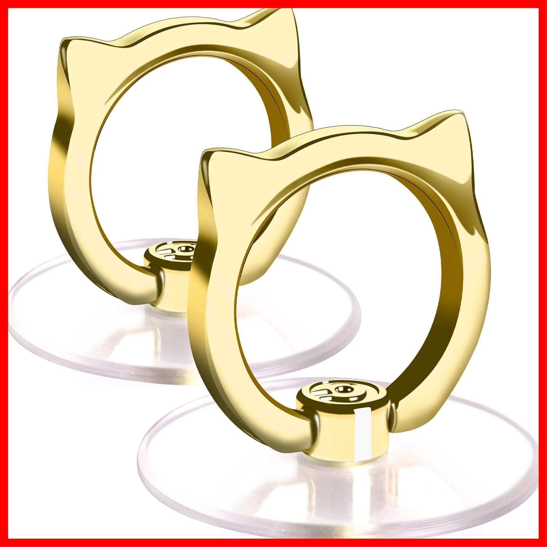 猫 透明 スマホリング ネコ 落下防止リング ホールドリング 薄型 スタンド 車載ホルダー 360回転 iPhone/Android各種他対応 (猫型2個金)