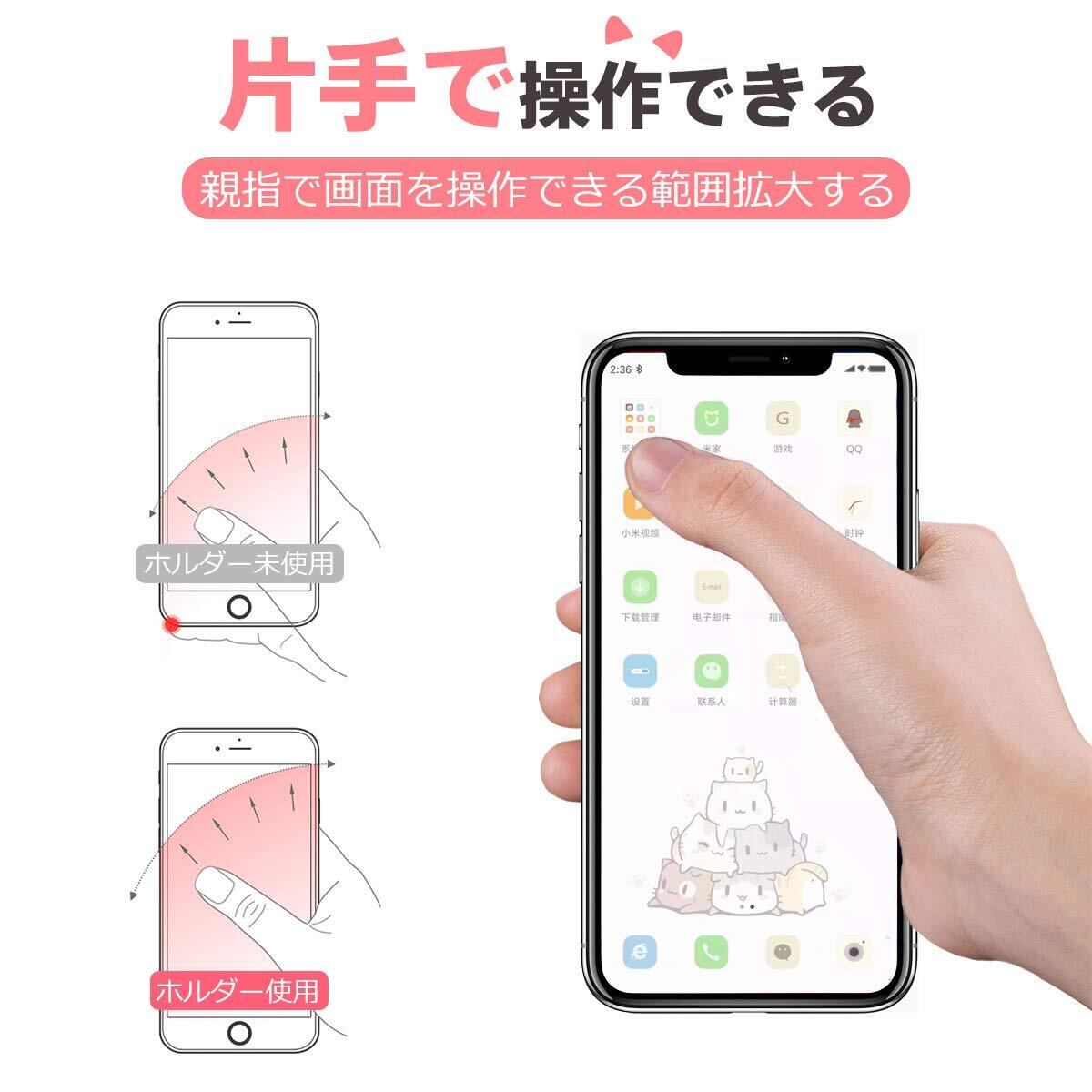【広い操作範囲】片手で握らなくでも本体を支えることができるようになるので、親指で画面を操作できる範囲拡大します。