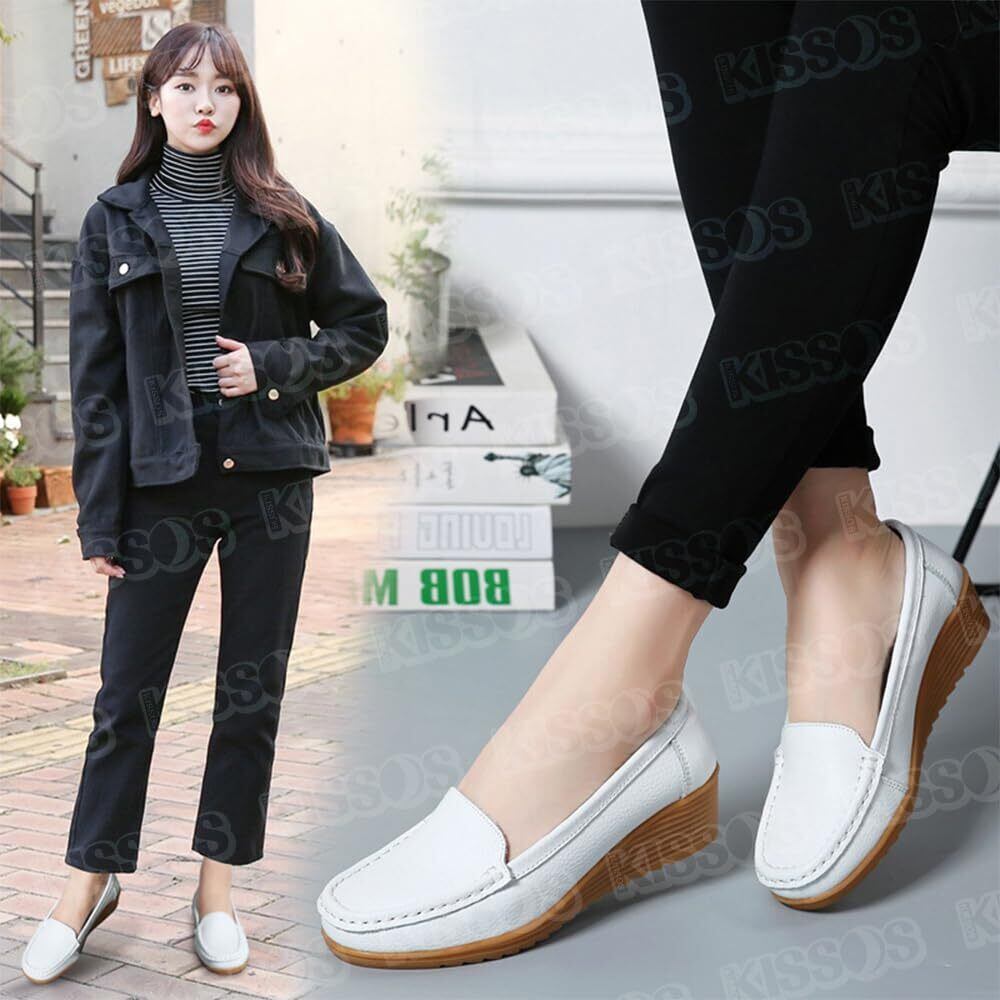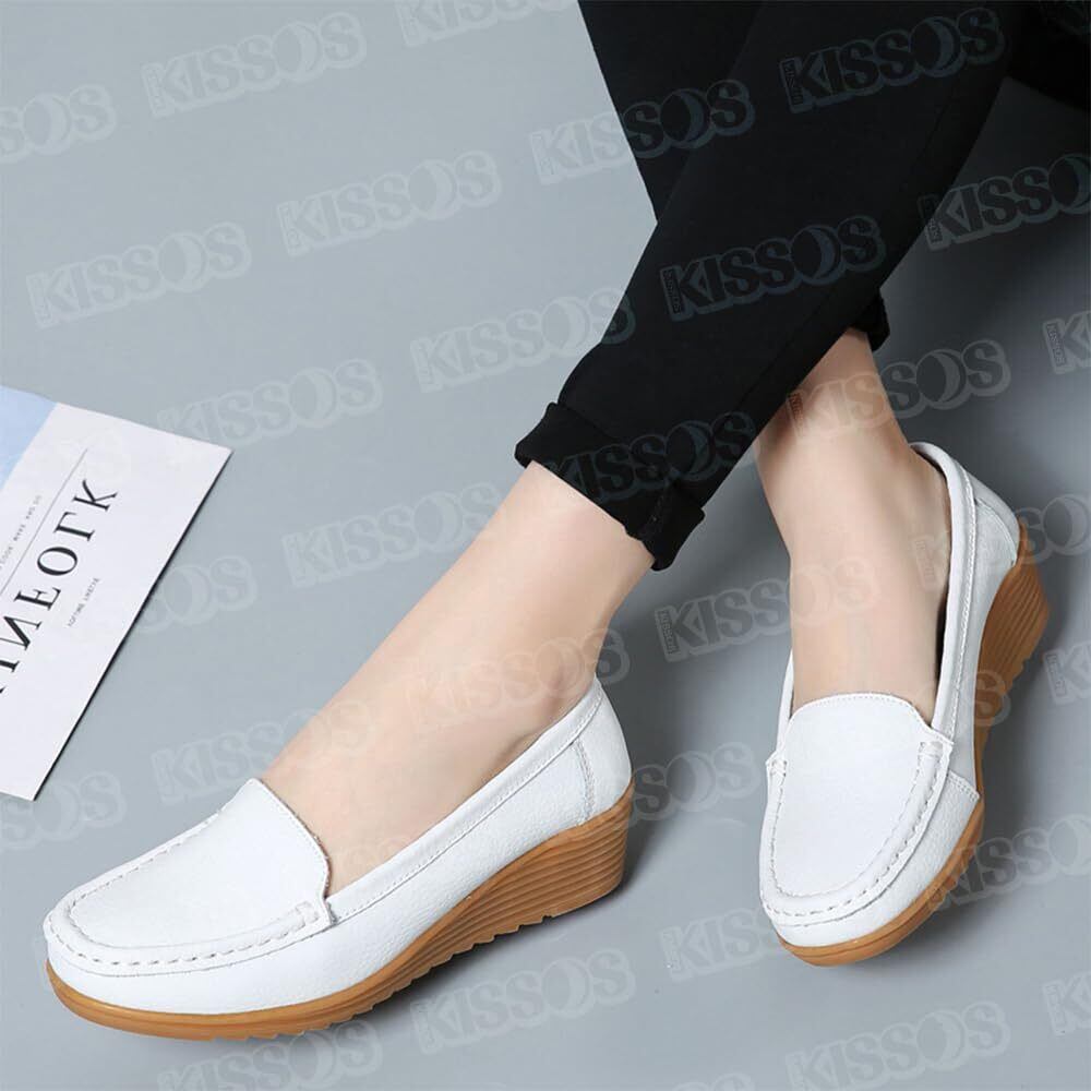 キッソス(KISSOS) ローファー ドライビング シューズ スリッポン レディース フラット カジュアル 婦人靴 (ホワイト, 23.5cm(37))