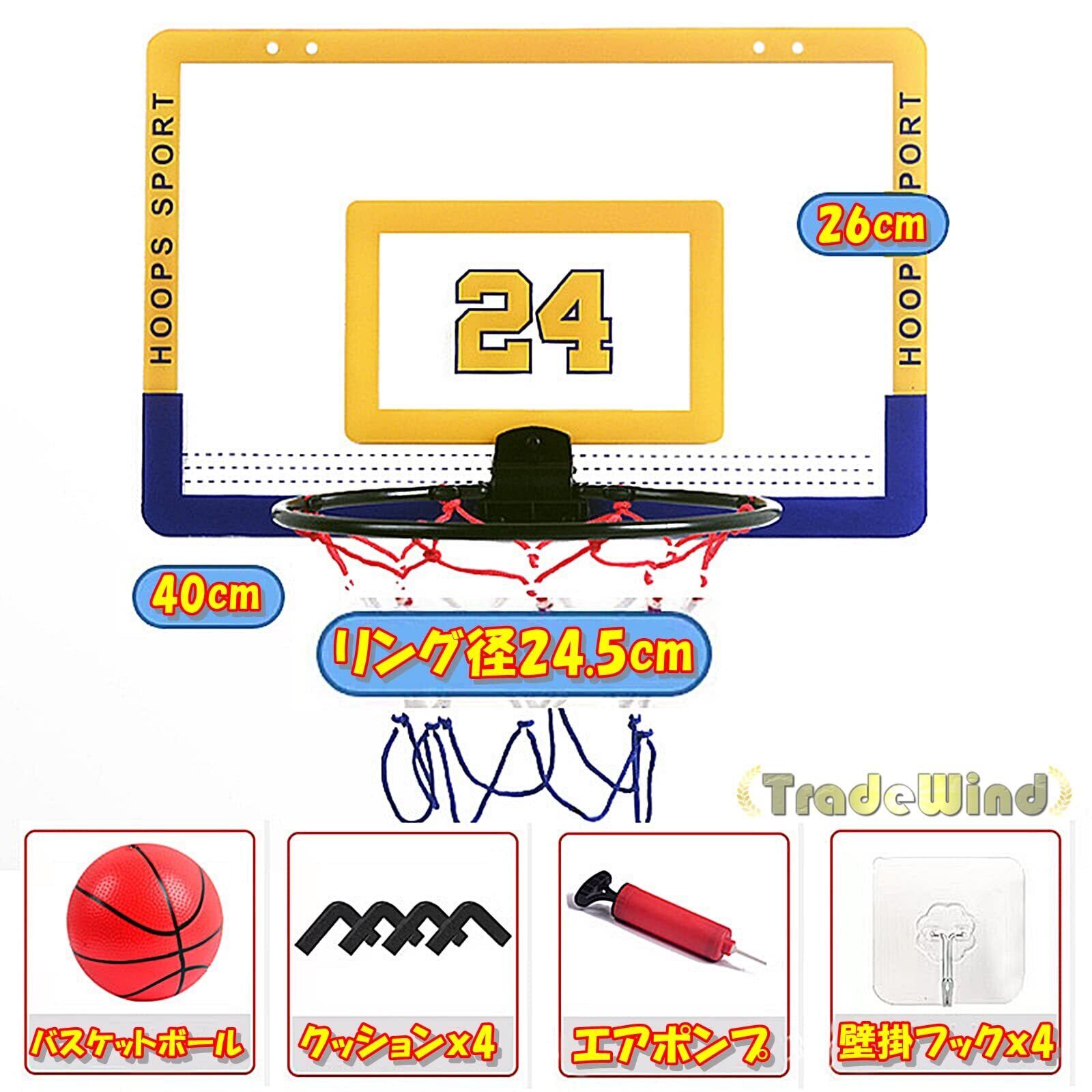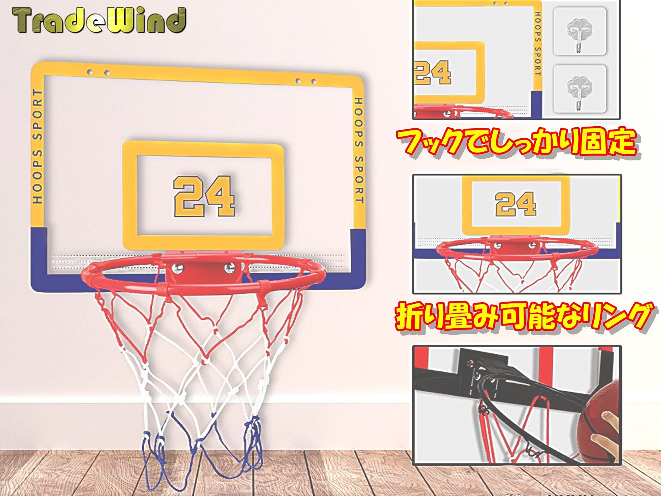 TradeWind バスケットゴール バスケットリング ネット バスケ ボード 壁掛け シュート練習 ボール エアポンプセット ミニサイズ(黄x青40cm)