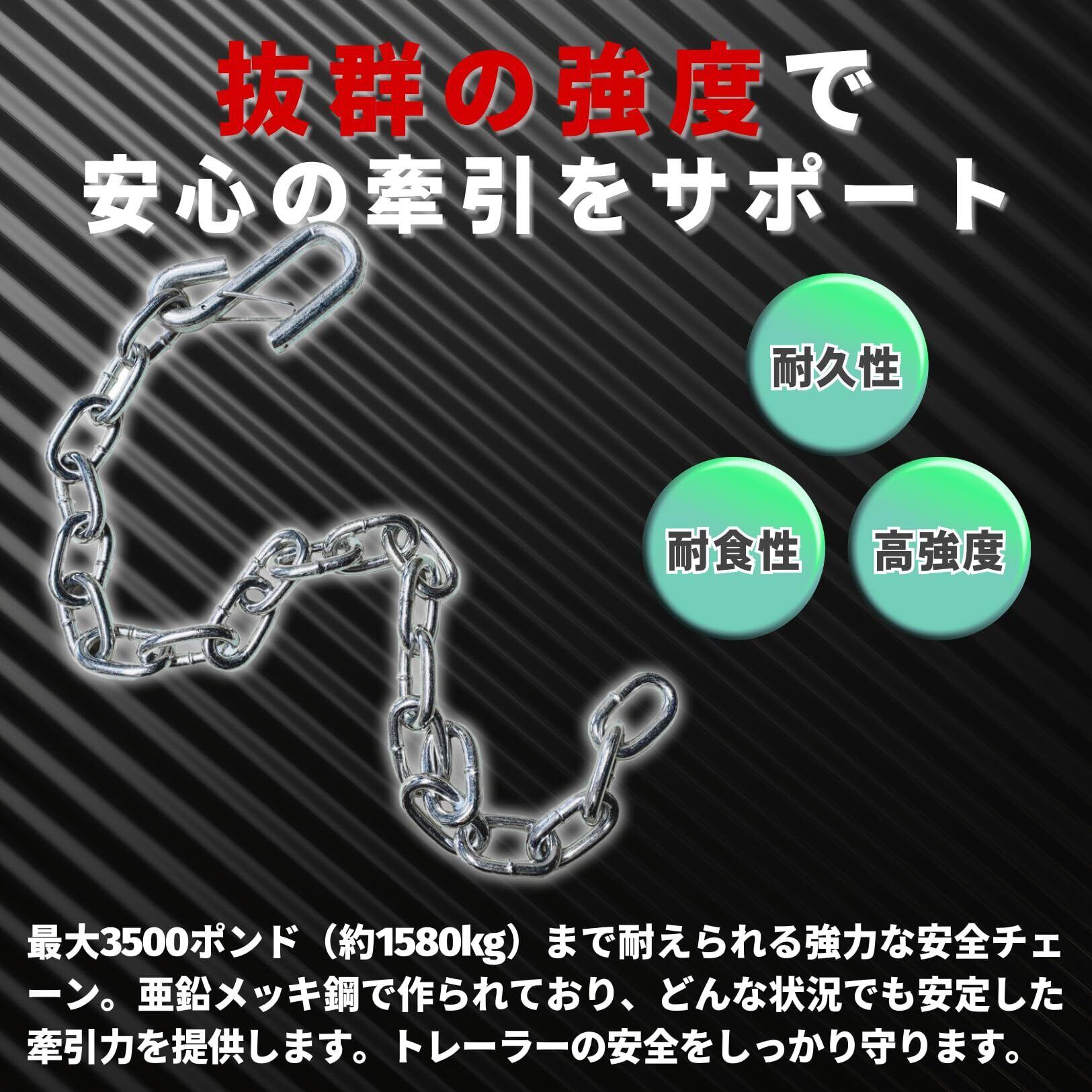 PLEAVIT トレーラー チェーン 牽引 フック付きチェーン 鎖 安全チェーン 3500ポンド S字フック ダブル