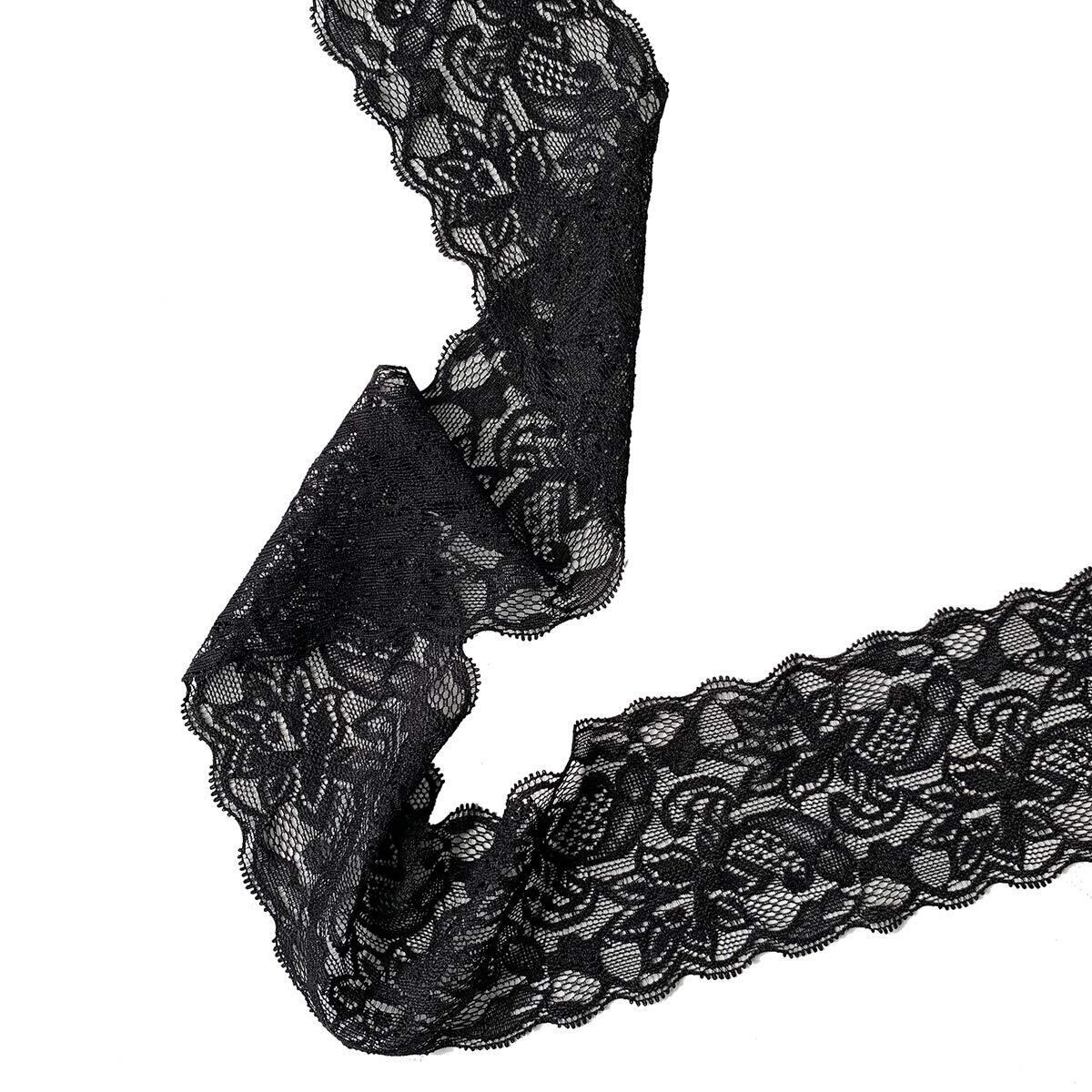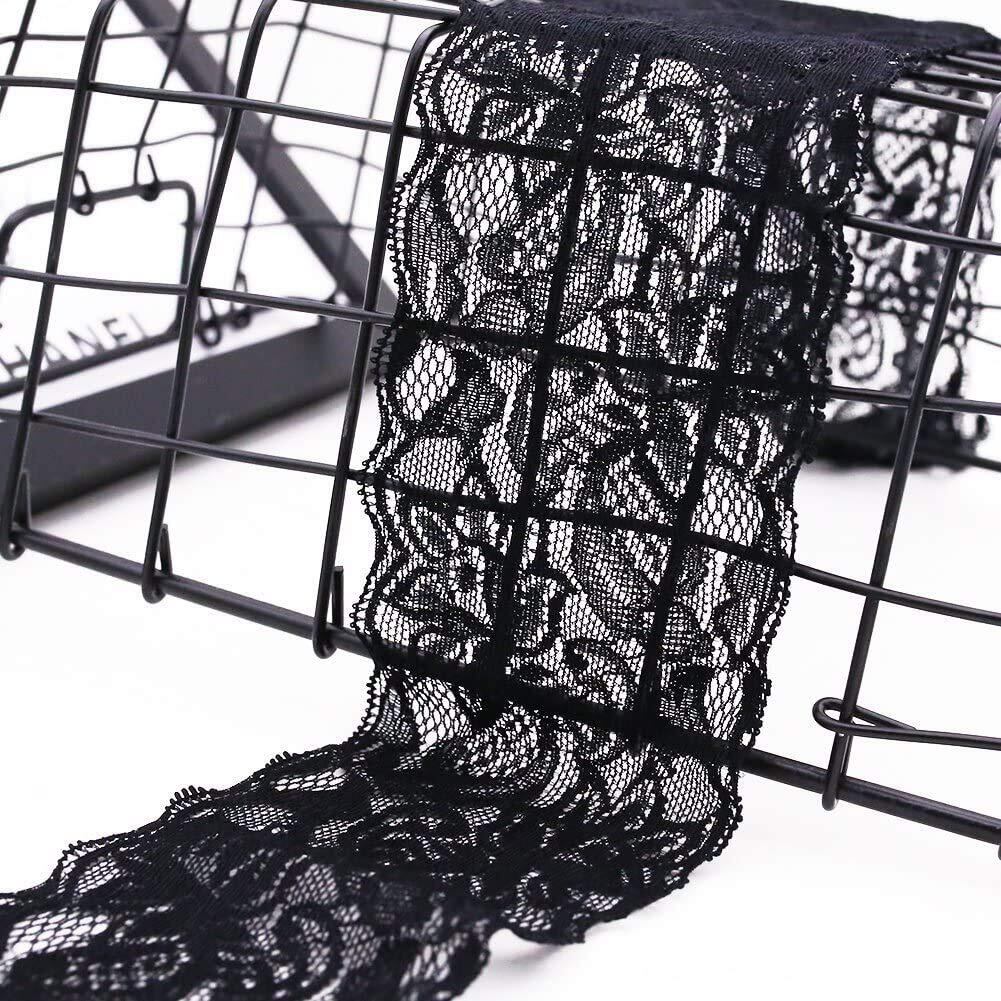 花柄 レースリボン 黒 DIY手芸 服装素材 ギフト飾り 装飾材料 長さ9m/巻