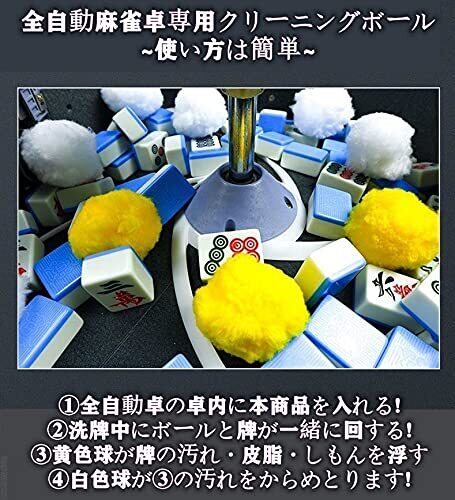 【使い方】?全自動卓の卓内に本商品を入れる!?洗牌中にボールと牌が一緒に回する!?黄色球が牌の汚れ・皮脂・しもんを浮す!?白色球が?の汚れをからめとります!※洗牌中にボールの交換は危険があるのでおやめください!
