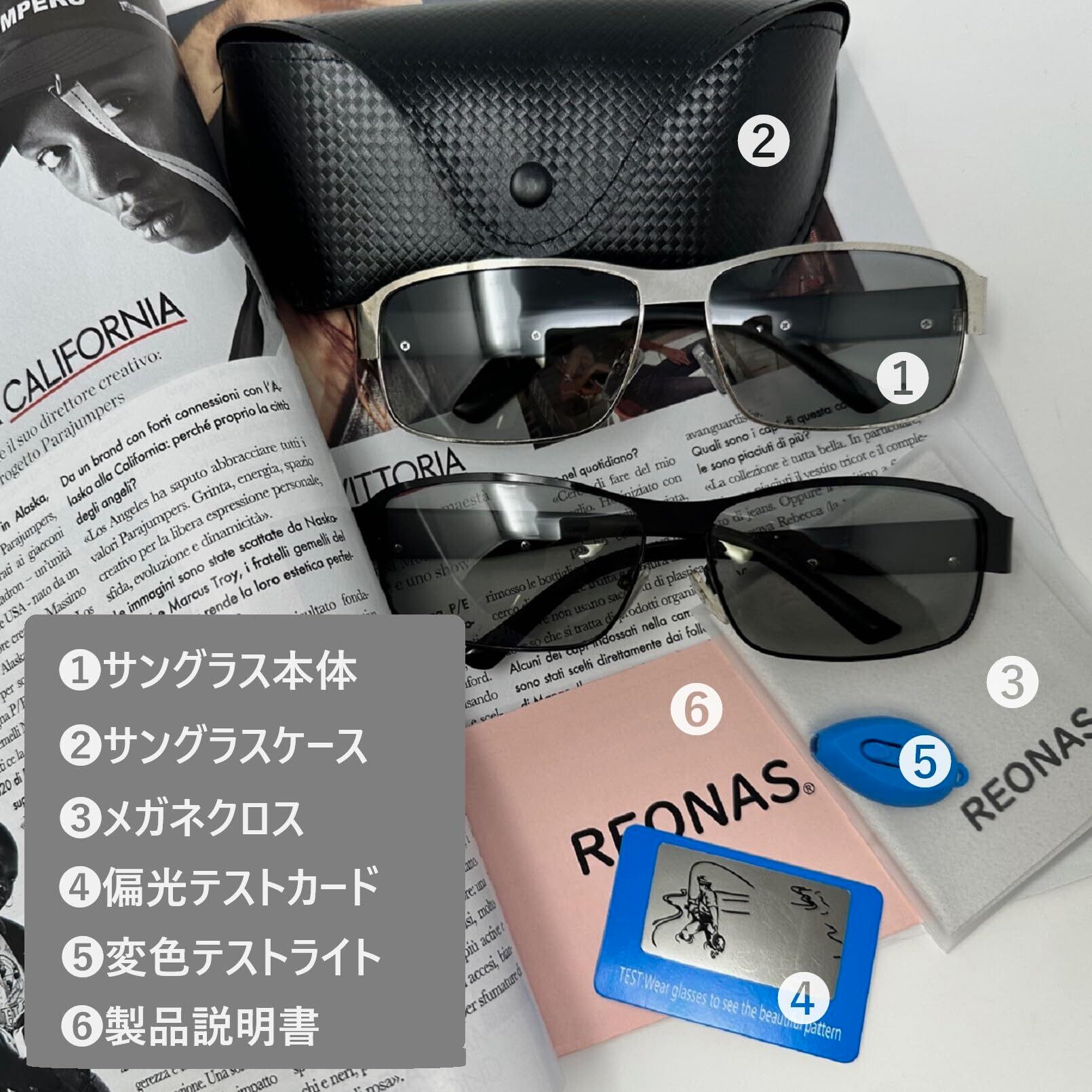 REONAS 【 偏光+調光 サングラス 】メンズ 運転用 サングラス ドライブ 釣り アウトドア ケース付 マイクロファイバークロス付