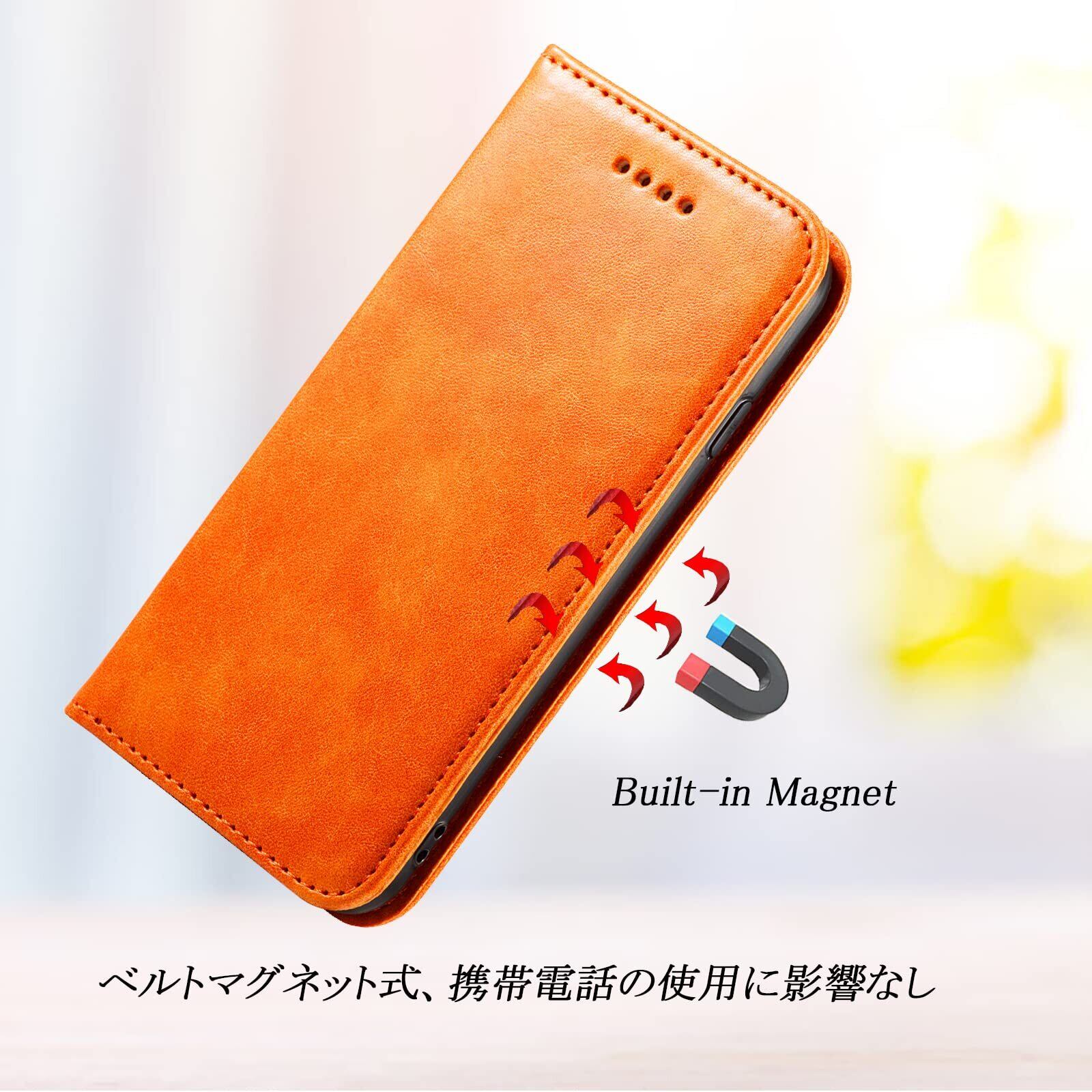 iPhone XR ケース手帳型 iPhonexr 手帳型ケース アイフォン xr 携帯ケース カバー スマホケース あいふぉん手帳型ケース XR 携帯カバー 合革 肌触りレザー ストラップホール付き 財布型 カード収納 財布型 iphone case マグネット内蔵 スタンド機能 耐衝撃 薄型 軽量 防水 耐摩擦シンプル ビジネス風 男女兼用 (iPhone XR 6.1inch対応) オレンジ