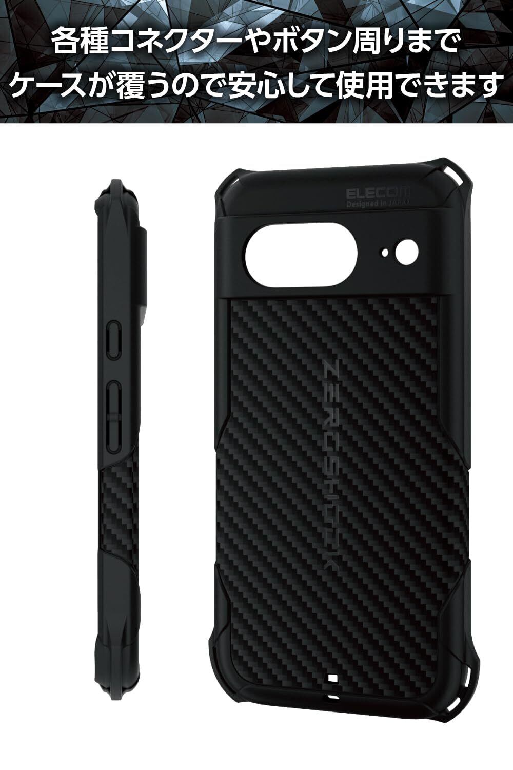 エレコム Google Pixel 8 ケース 耐衝撃 ZEROSHOCK ハニカム構造 四つ角ダンパー グリップテクスチャー ワイヤレス充電対応 ストラップホール付き ブラック PMWP233ZEROGBK | hananoki