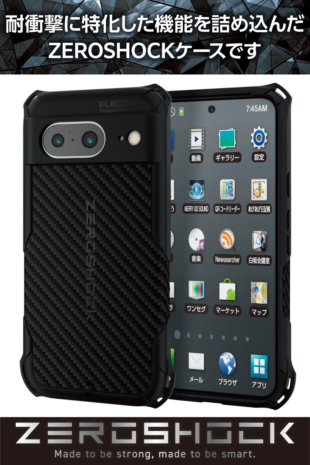 ■衝撃吸収構造で端末を衝撃から守るZEROSHOCKケースです。