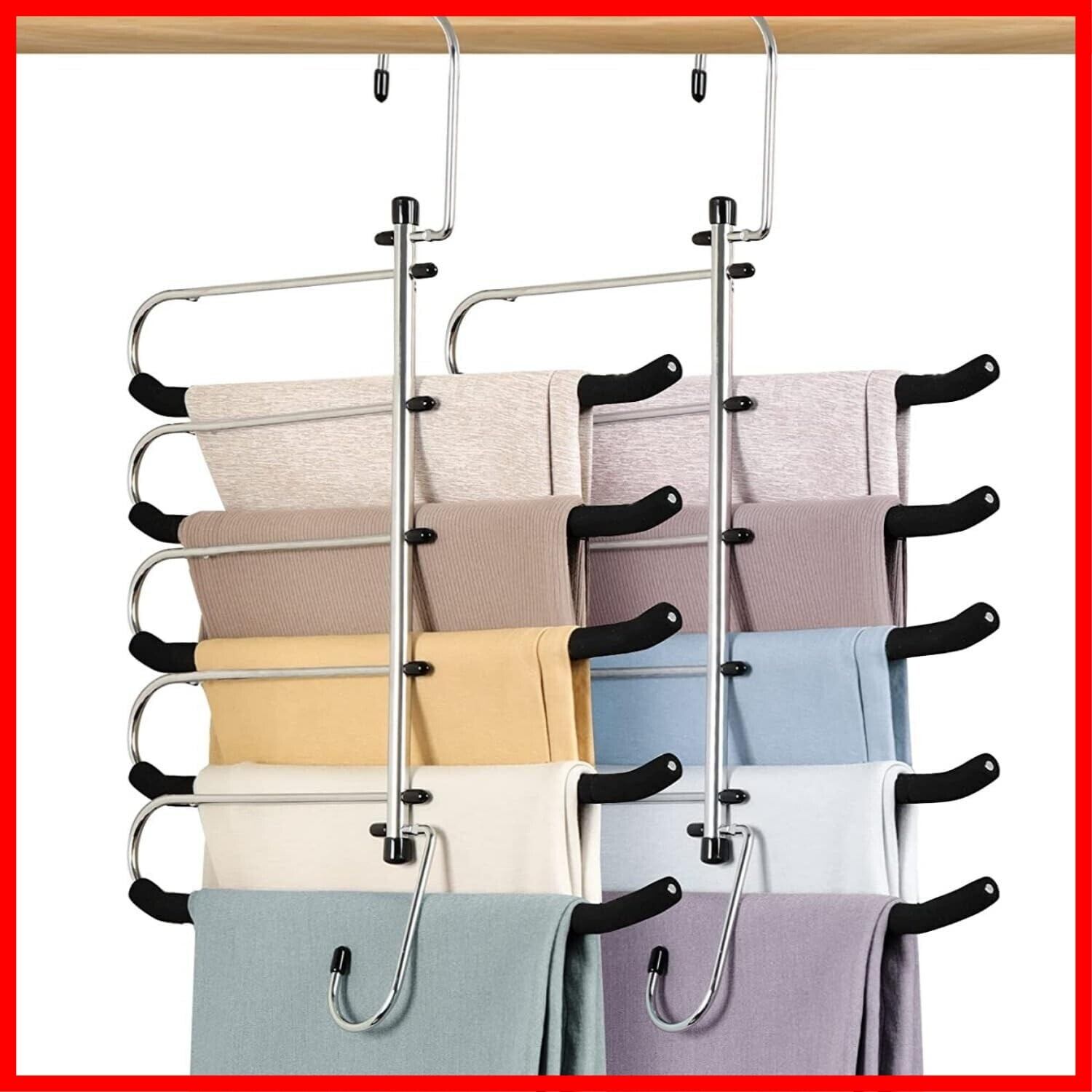 Hangerspace ズボンハンガー スラックスハンガー ハンガー パンツ ズボン収納 ステンレス すべらない 省スペース かたくずれ防止 ズボン掛け クローゼット収納 多機能収納用 皺防止 折りたたみ式 5段 移動式バー 組み立てビデオあり 2本セット | hananoki