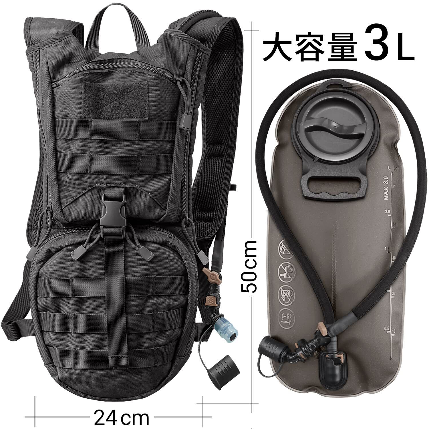 KAMUI ハイドレーションバッグ【大容量3L】ミリタリーバックパック付き給水リザーバー&キャリータイプ – トレイルランニング、ハイキング、サイクリング、キャンプ、スキー、スノーボード、サバイバルゲームなどに最適