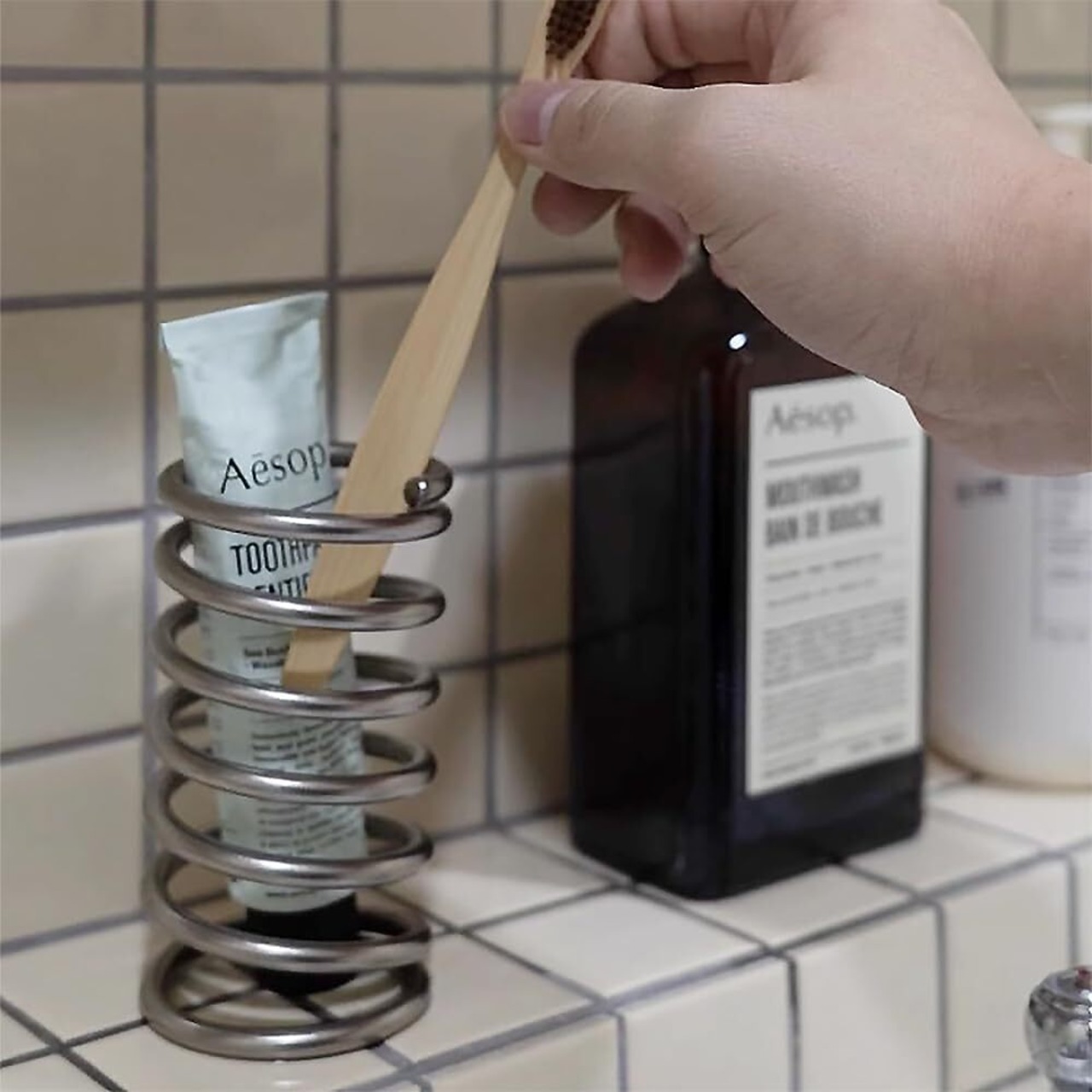 歯ブラシスタンド 歯ブラシホルダー 電動 スタンド 収納 おしゃれ スプリングスタンド ペン立て スプリングホルダー マルチスタンド シルバー ステンレス 洗面所 韓国インテリア 韓国雑貨 ショップ 什器 店舗(c-za0603)