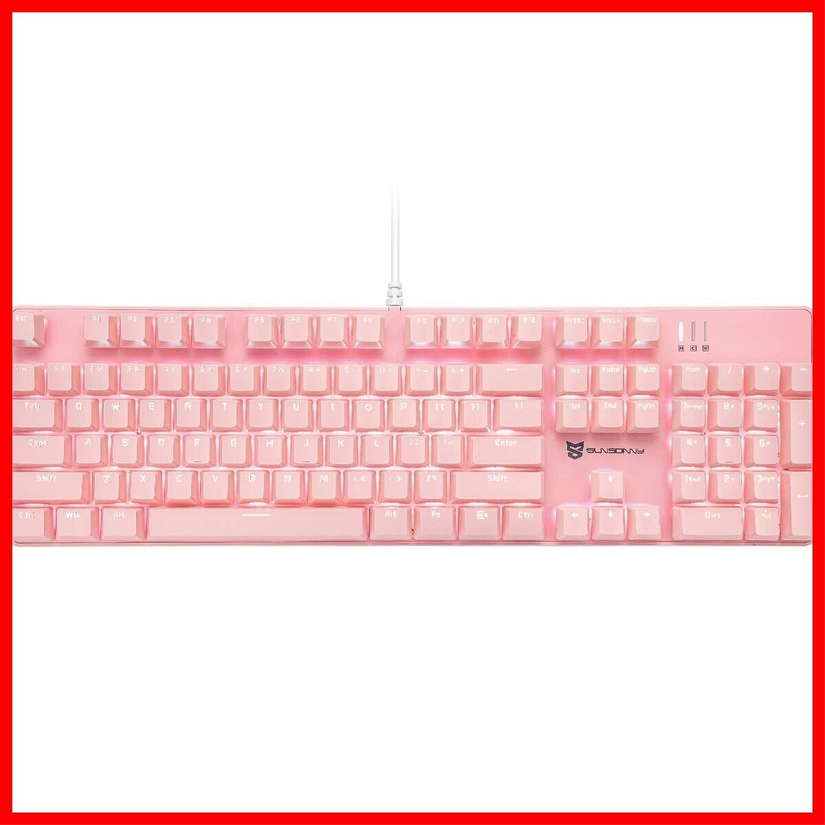 Merdia メカニカル式ゲーミングキーボード 全104キーボード US配列 USB有線キーボード LEDバックライト付き (赤軸-ピンク)