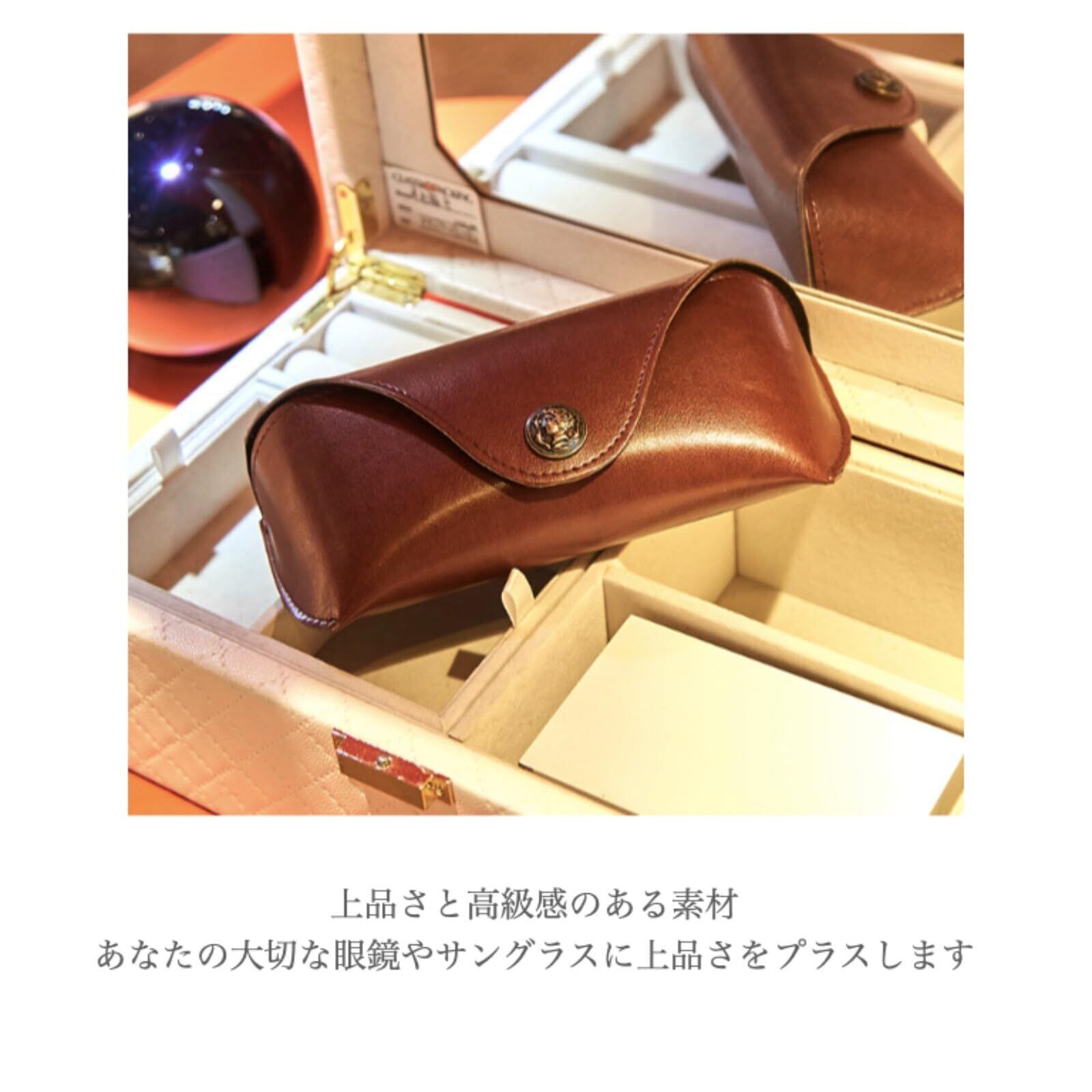 ▶︎上品さと高級感のあるレザー調の眼鏡ケース。あなたの大切な眼鏡やサングラスに上品さをプラスします