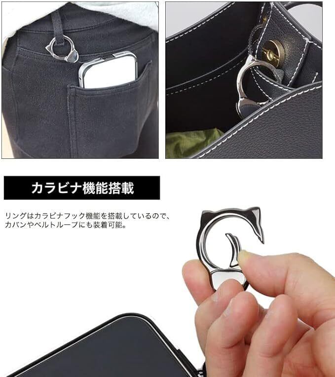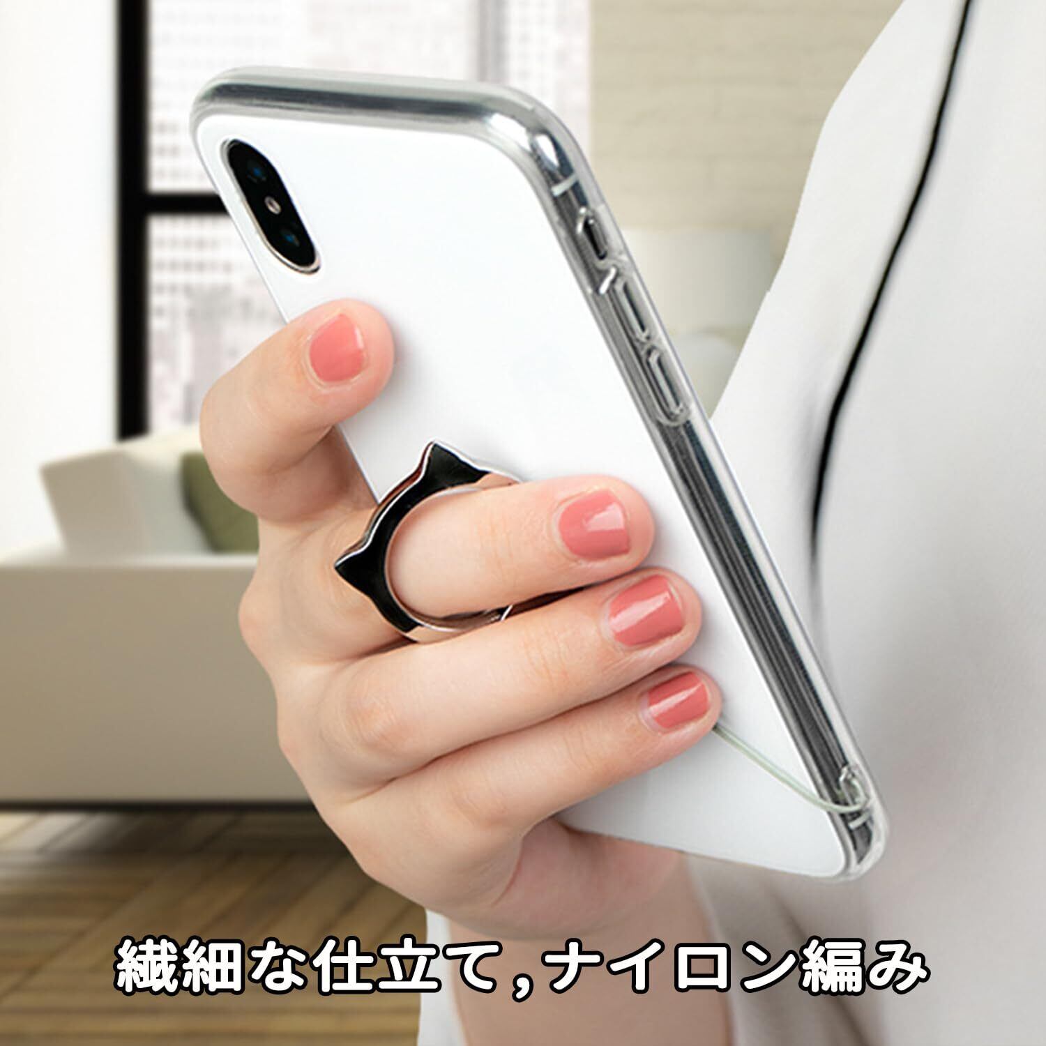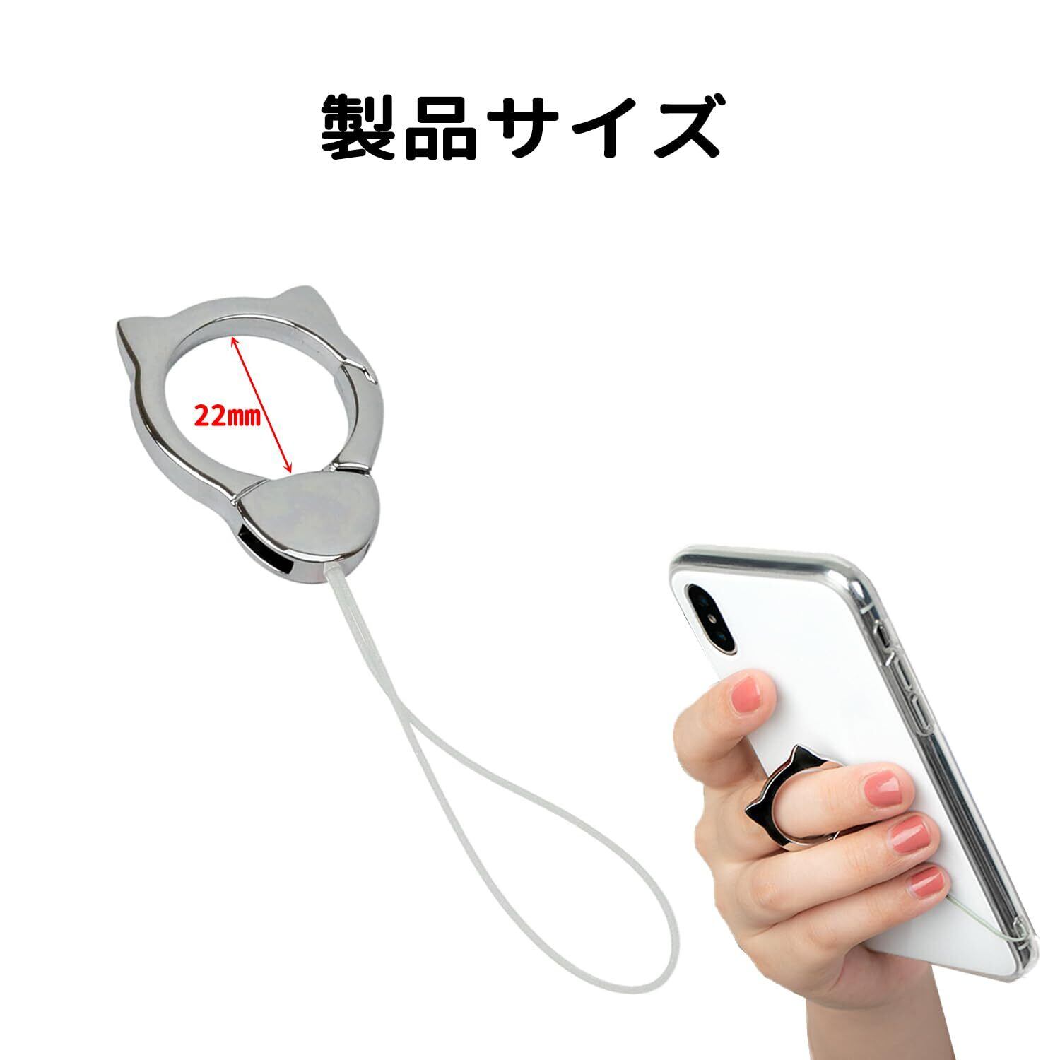リングストラップ フィンガーストラップ スマホ ホールド ねこ 耳 合金 落下防止 フィンガーストラップ 吊下げひも スマホ ショルダーストラップ カラビナ スマホ フィンガー 携帯ストラップ フィンガーリング 銀色
