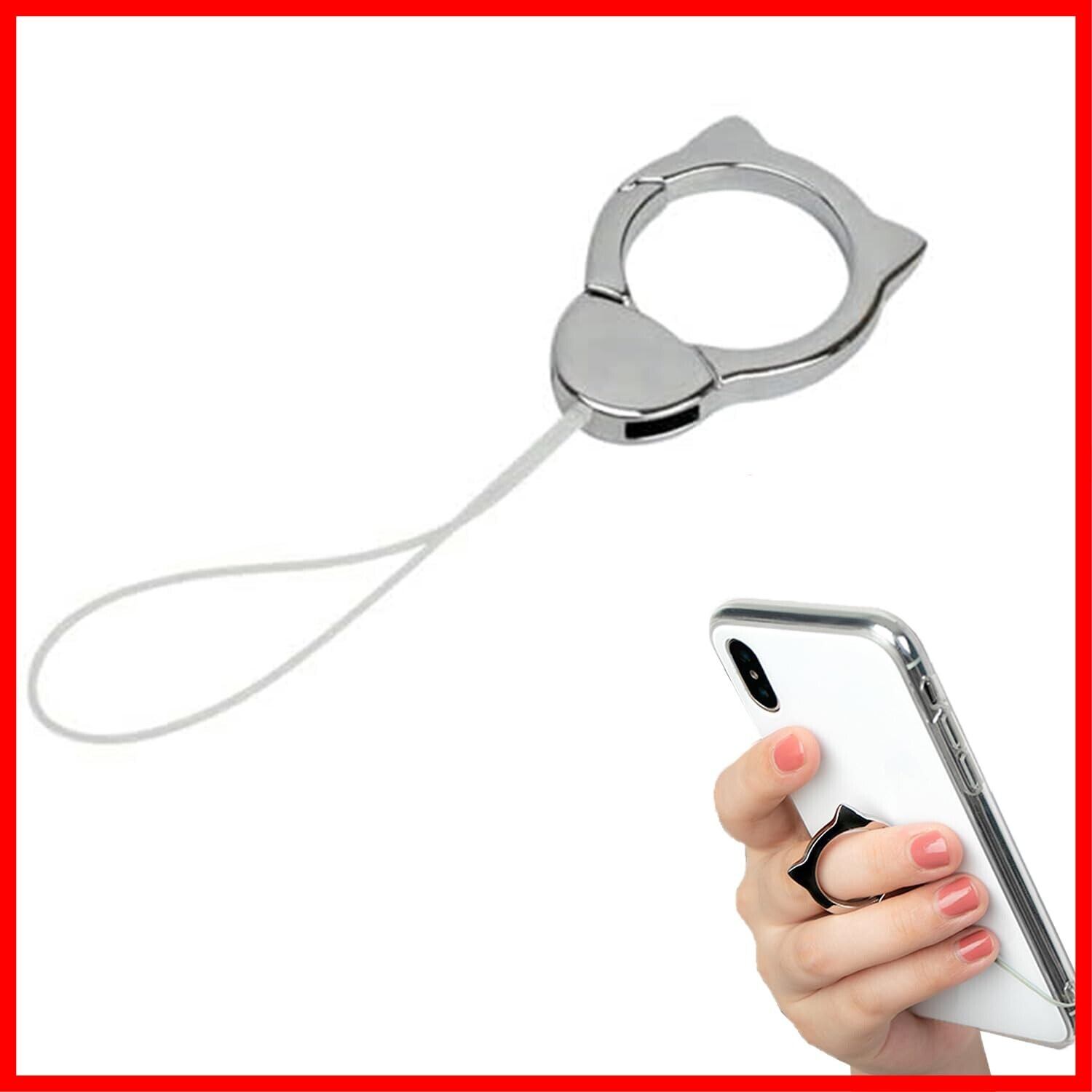 リングストラップ フィンガーストラップ スマホ ホールド ねこ 耳 合金 落下防止 フィンガーストラップ 吊下げひも スマホ ショルダーストラップ カラビナ スマホ フィンガー 携帯ストラップ フィンガーリング 銀色 | hananoki