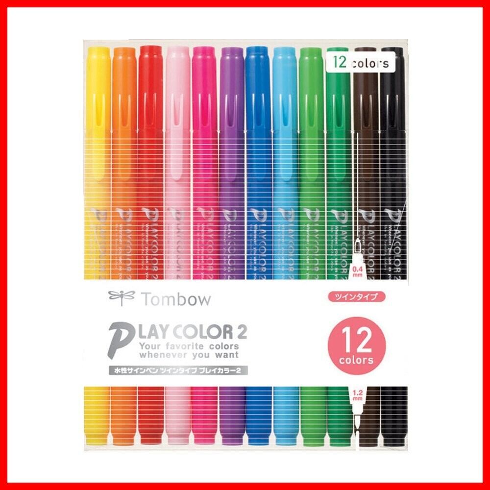 トンボ鉛筆 水性 サインペン 12色 (太1.2mm&細0.4mm ツインタイプ) カラーペン プレイカラー2 GCB-011