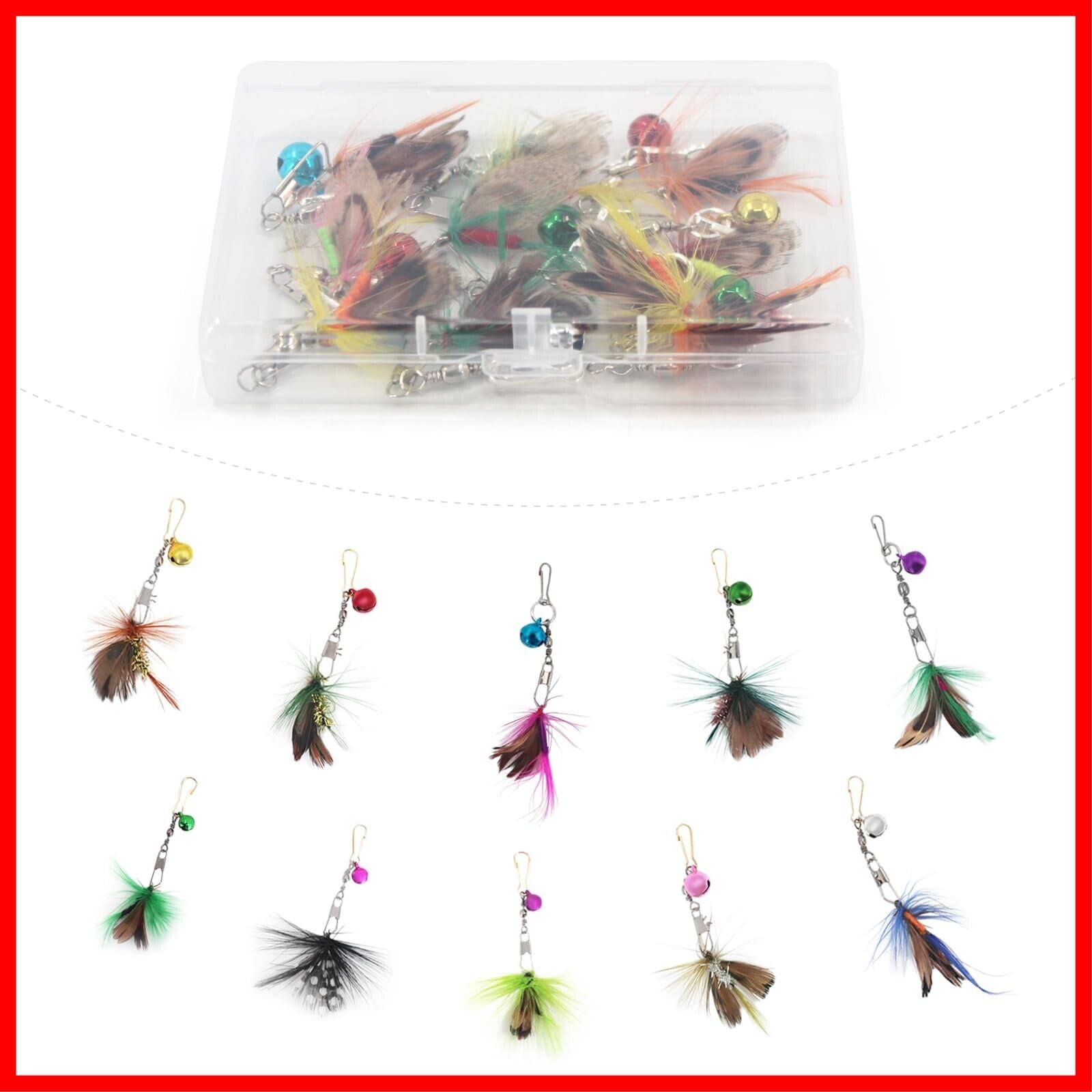 SONGWAY 猫 おもちゃ ねこ じゃらし 交換用10個小飛虫 収納ボックス付き