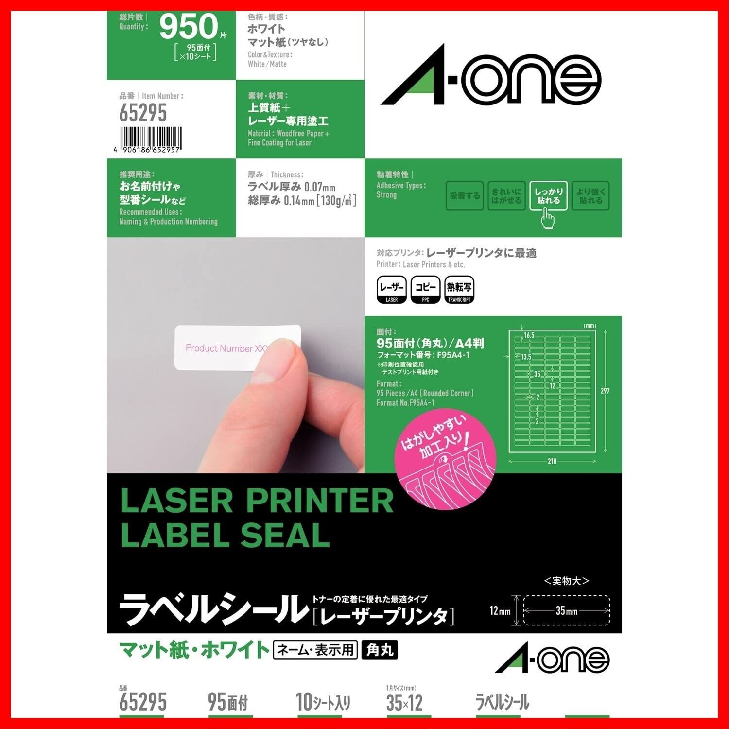 ・レーザープリンタでの印字適正に優れたラベルシールです。