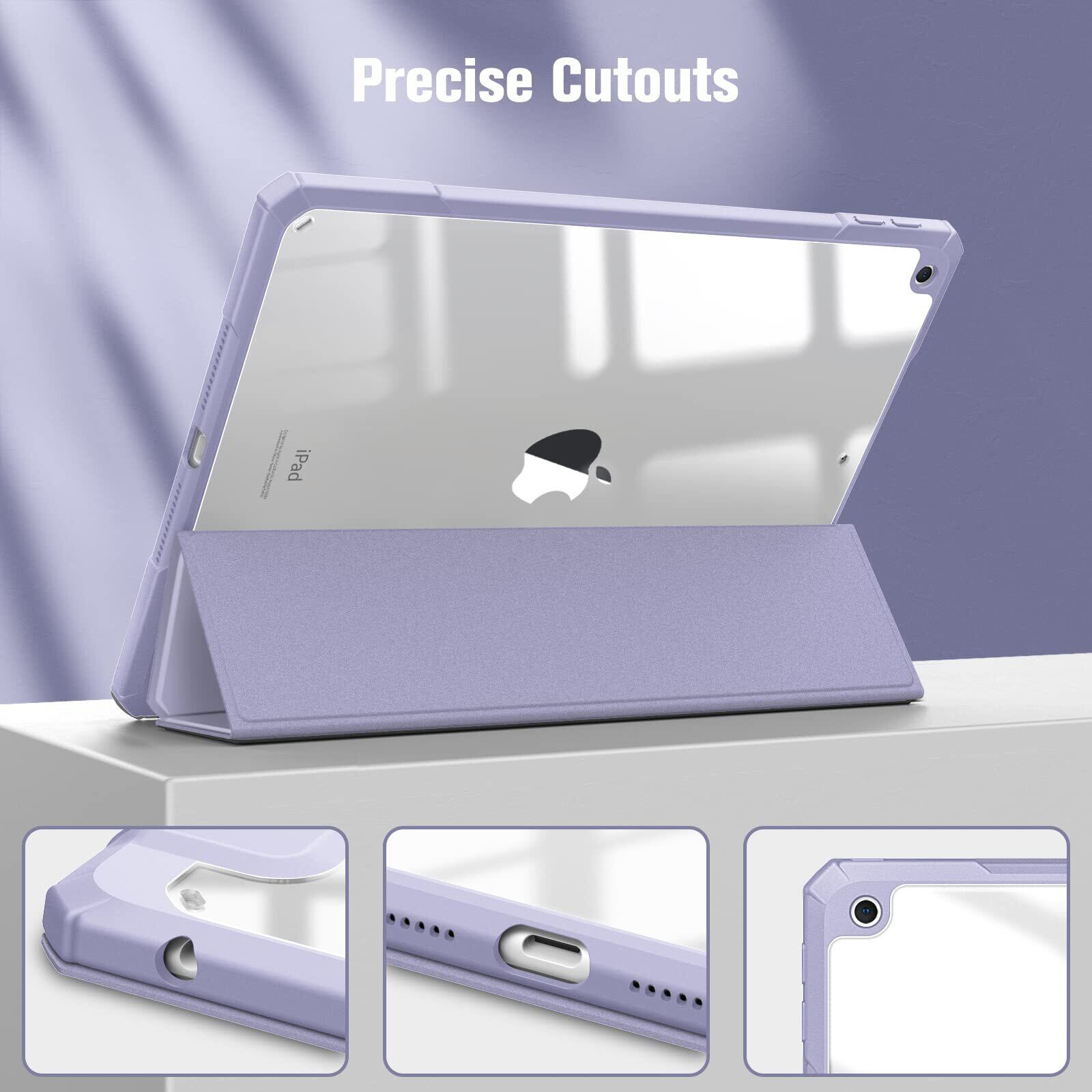 Fintie iPad 10.2 ケース iPad 第9 / 8 / 7世代 ケース 2021 2020 2019 透明バックカバー Apple Pencil 収納可能 三つ折スタンド スリープ機能 軽量 薄型 傷つけ防止 PU合成レザー TPU (モデル番号A2602、A2603、A2604、A2605)(ライラックパープル)