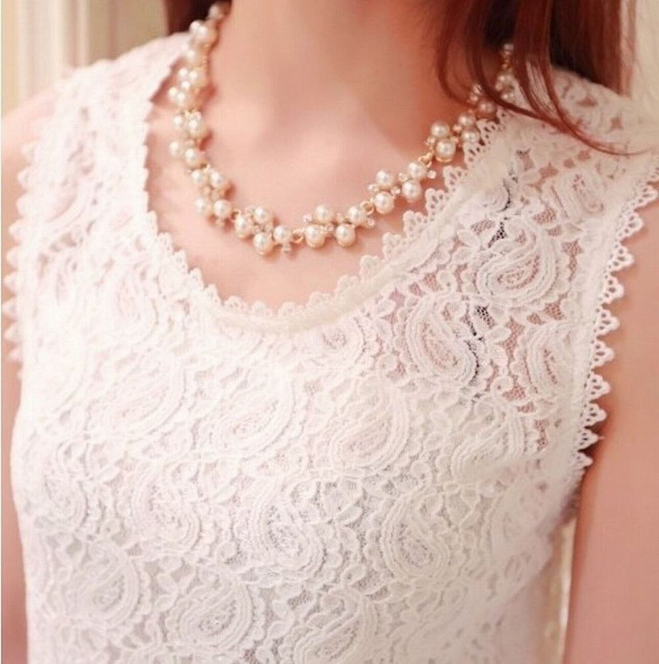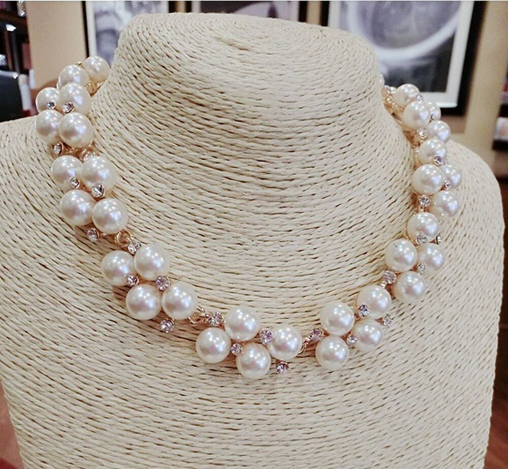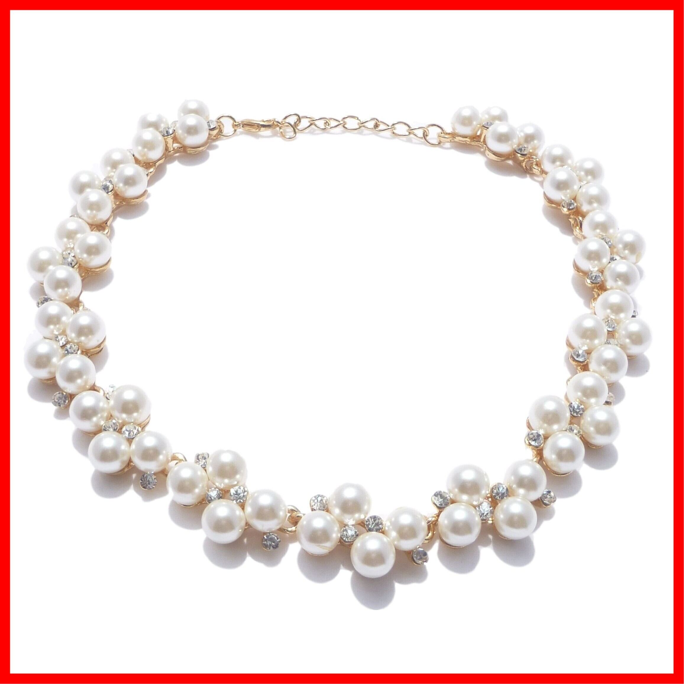 [N-Style] パール ラインストーン ビジュー ネックレス ピアス イヤリング セット レディース