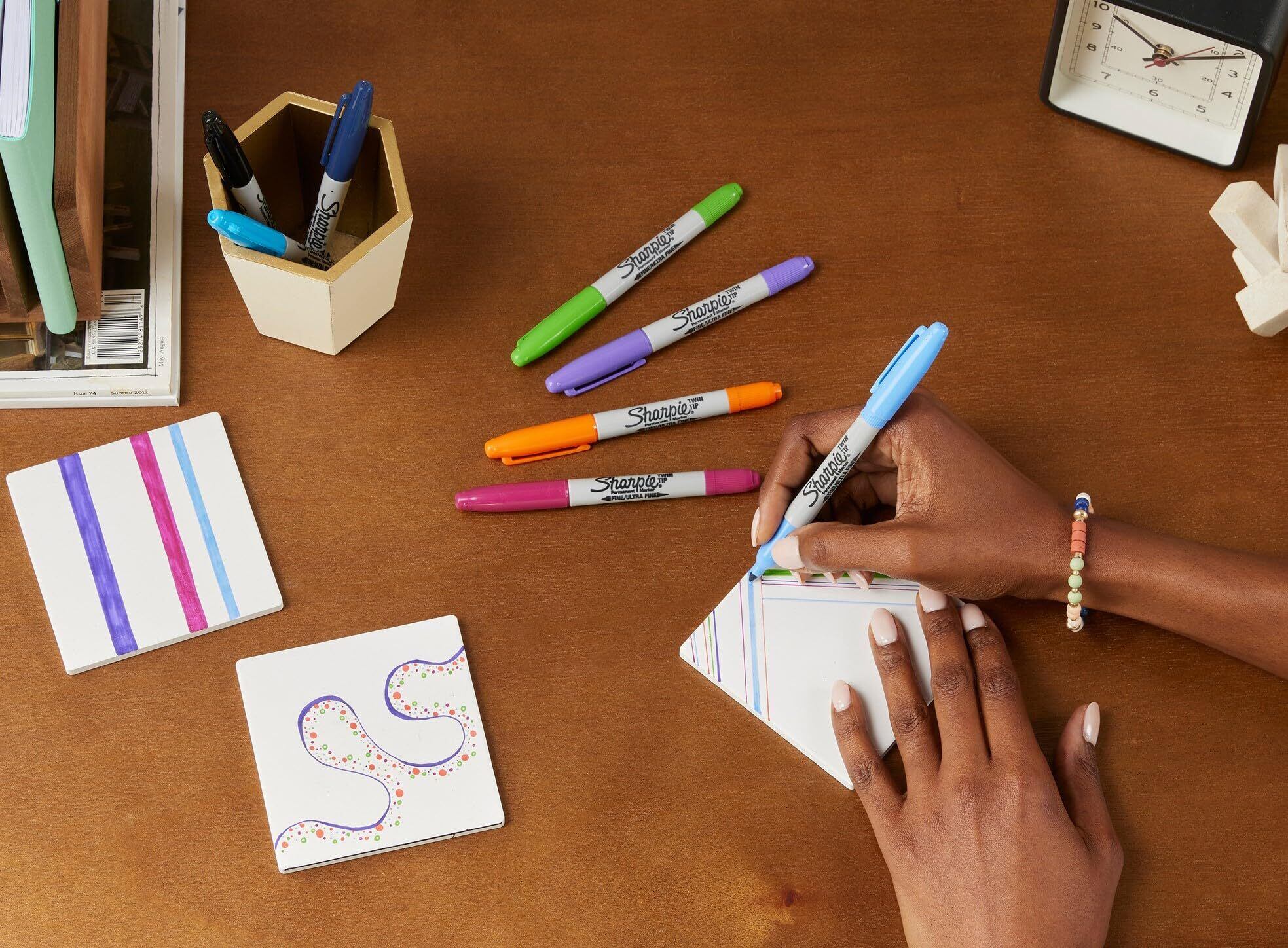【名前ペンから本格的なイラストまで】紙、プラ板、金属などに書ける油性マーカー。鮮やかな発色でスケッチやデコレーションにおすすめ。速乾性・耐水性にも優れていて、色あせしにくいので名前書きにも最適。