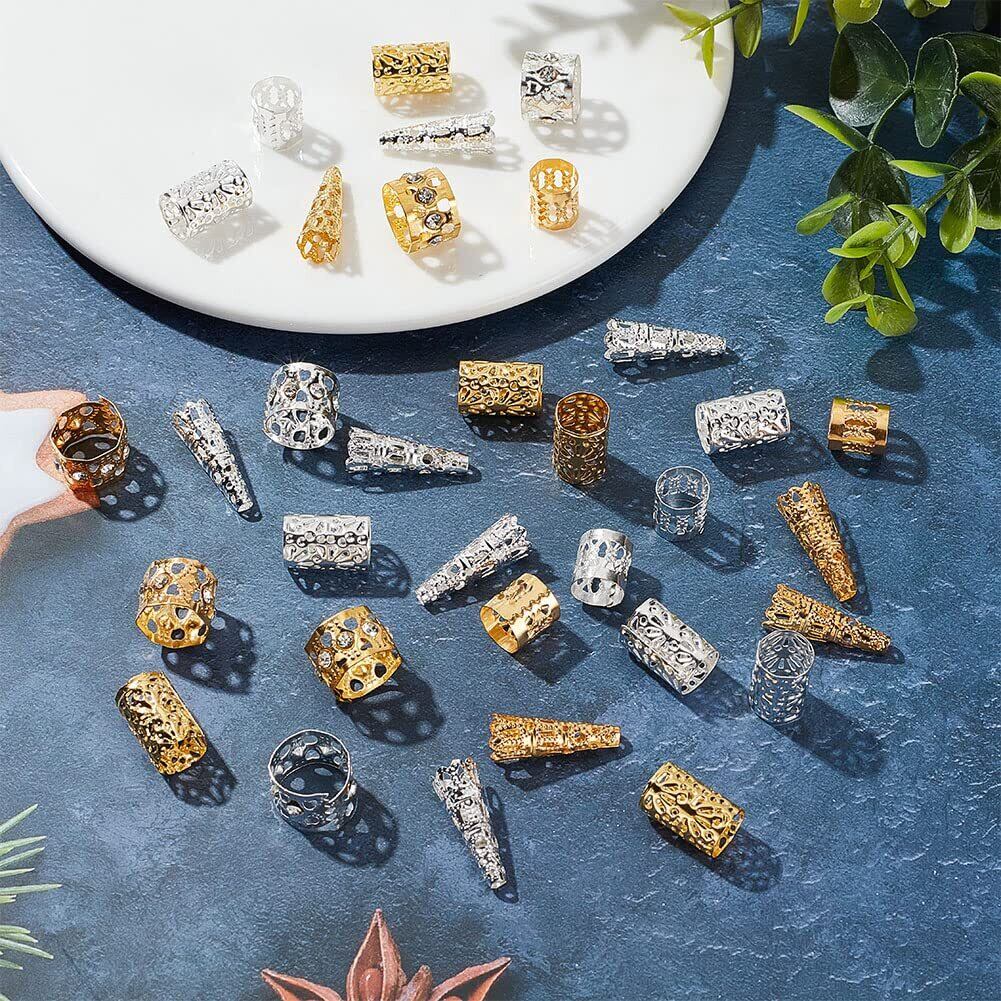 PH PandaHall 112個 ヘアアクセサリー 4種 ヘアリン グ 髪ビーズ ヘア編組 髪編み リング ドレッド ヘア金具 髪飾り DIY アクセサリーパーツ ダイヤモンドをセットしたデザイン DIY用 手芸材料 手作り素材 シルバー ゴールド | hananoki