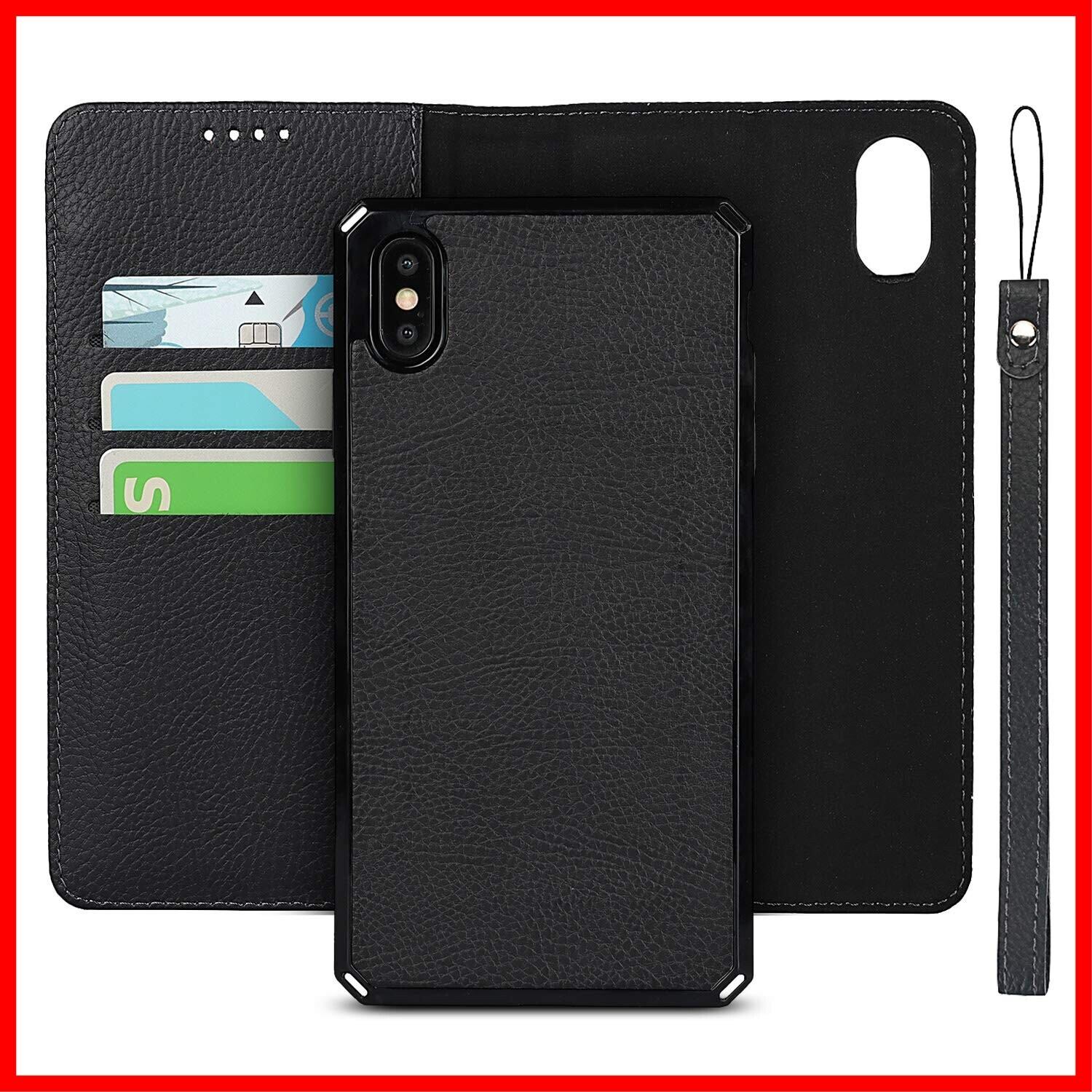 Pelanty for iPhone XS Max ケース手帳型 for iPhoneXSMax 背面カバー 分離式両用2way 取り外し自由 内蔵マグネット 携帯カバー 縄掛け 合成PUレザー+TPU 財布型カード収納 横開きスタンド機能 ストラップ付き スマホケース アイフォンXS Max 耐衝撃 (2in1-ブラック) | hananoki