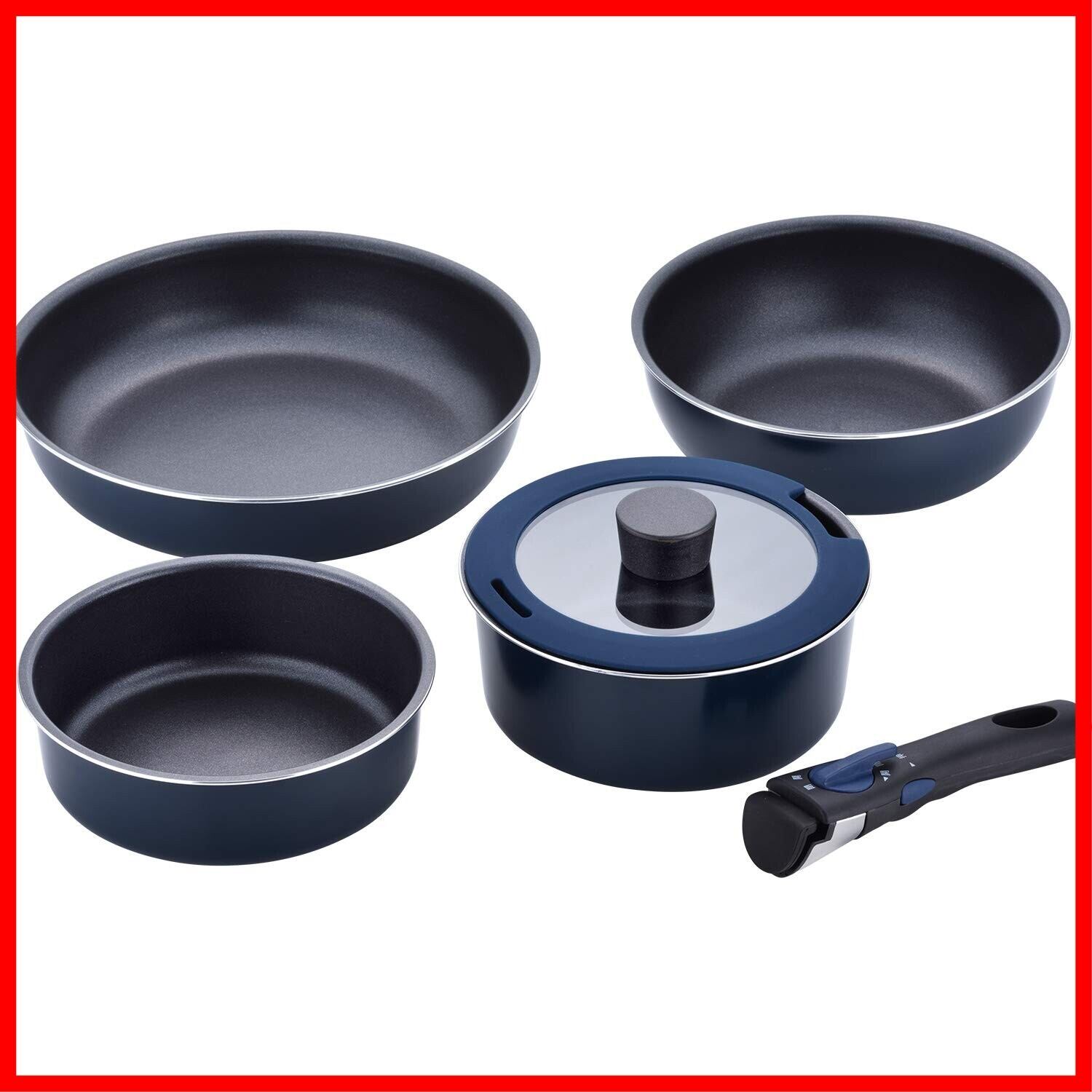 セット内容:フライパン18cm・いため鍋21cm(約2.2L)・フライパン26cm・鍋18cm(約1.8L)・ガラス蓋18cm・着脱ハンドル 各1