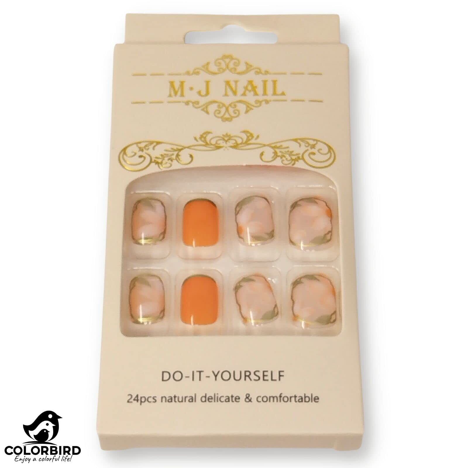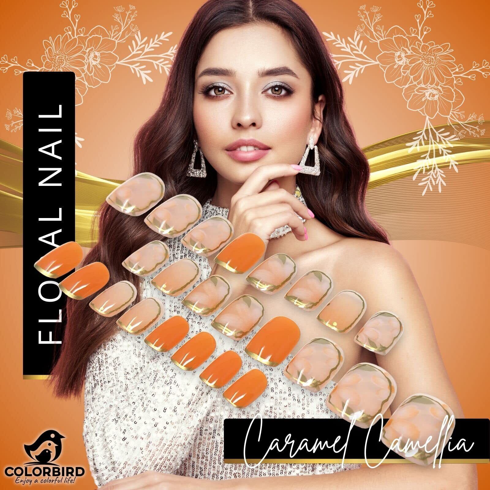 COLORBIRD ネイルチップ オレンジ 花 ショート つけ爪 24枚 華やか 可憐 女性らしい フレンチ (Caramel椿)