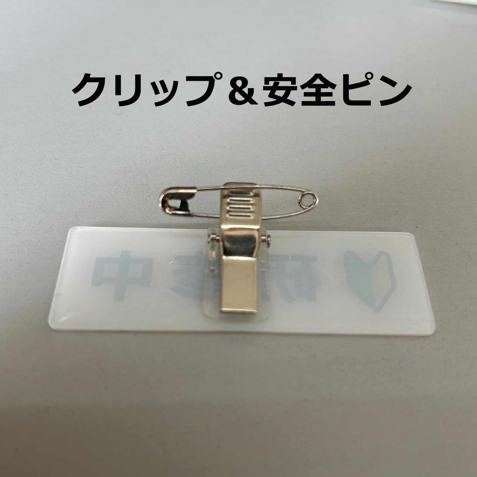裏面は安全ピンとクリップ付きです。状況に合わせてご使用していただけます。
