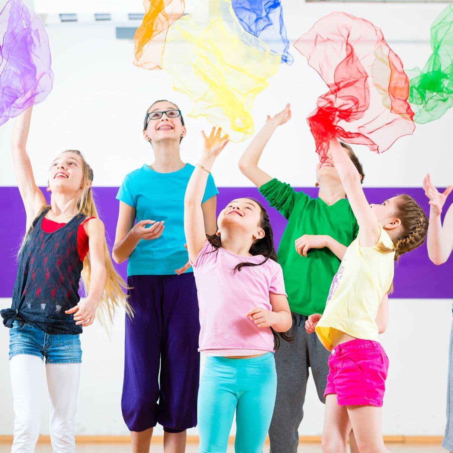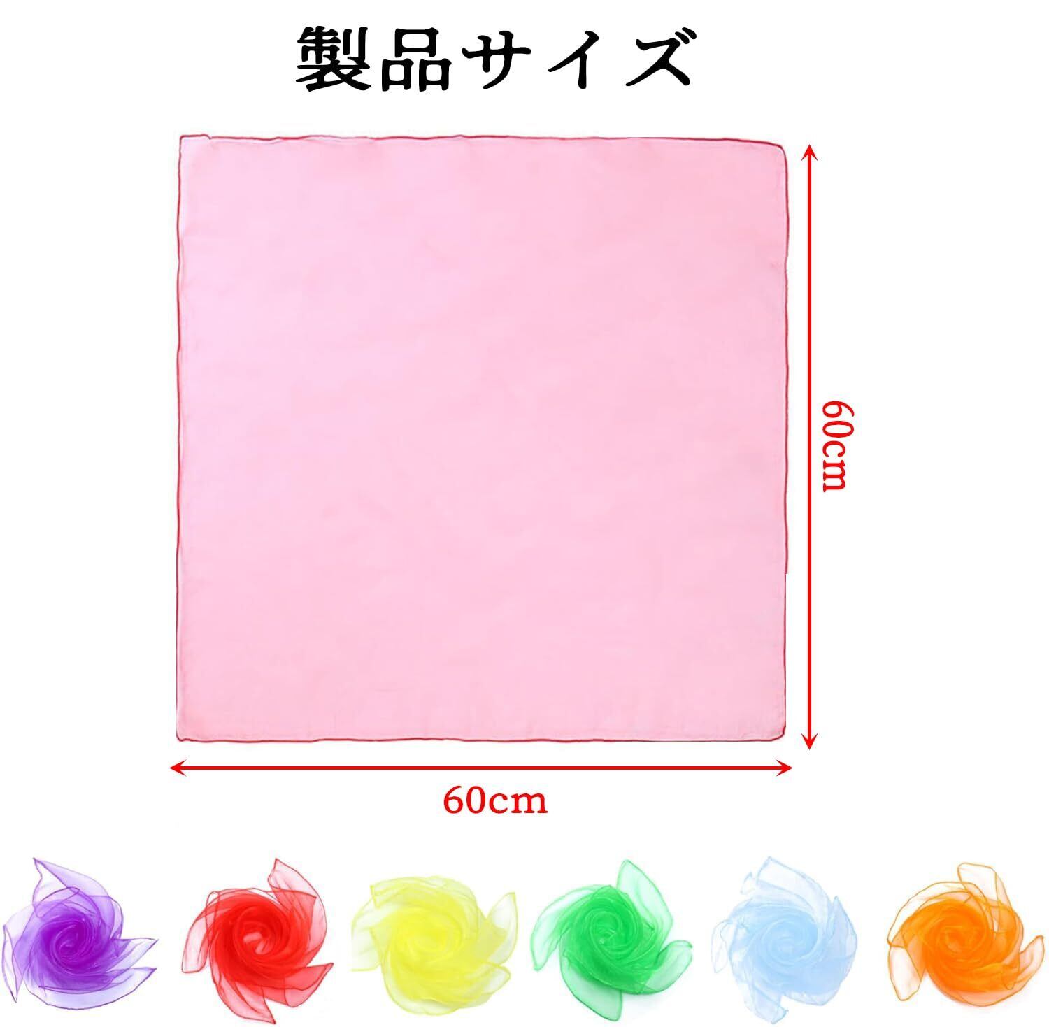 ChasCoCoカラー シフォン シルクスカーフ 6色正方形 四角 ダンス スカーフ カラフル スカーフ 巻き方 60*60cm お遊戯 子ども スカーフ遊び ダンス 運動 ジャグリング などに 6枚入り | hananoki