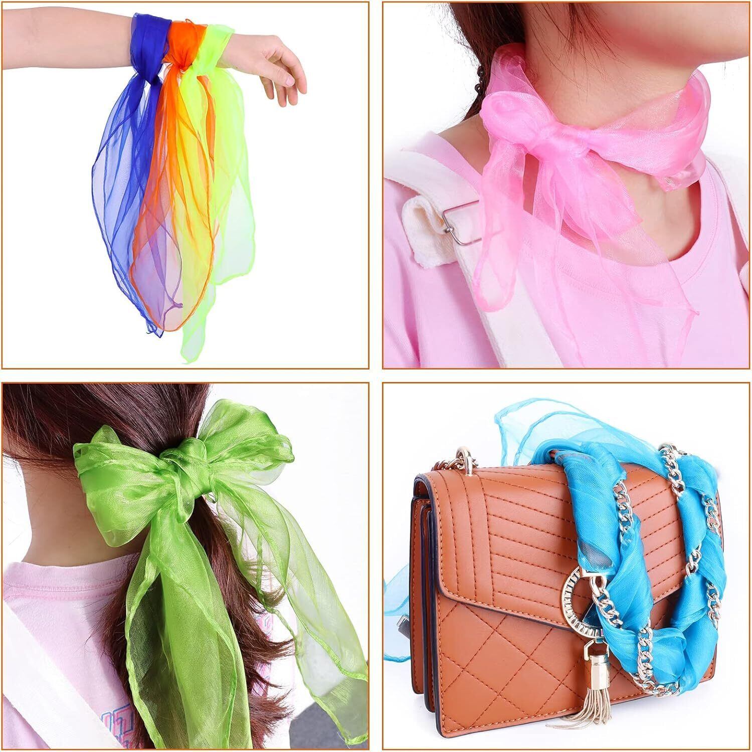 ChasCoCoカラー シフォン シルクスカーフ 6色正方形 四角 ダンス スカーフ カラフル スカーフ 巻き方 60*60cm お遊戯 子ども スカーフ遊び ダンス 運動 ジャグリング などに 6枚入り