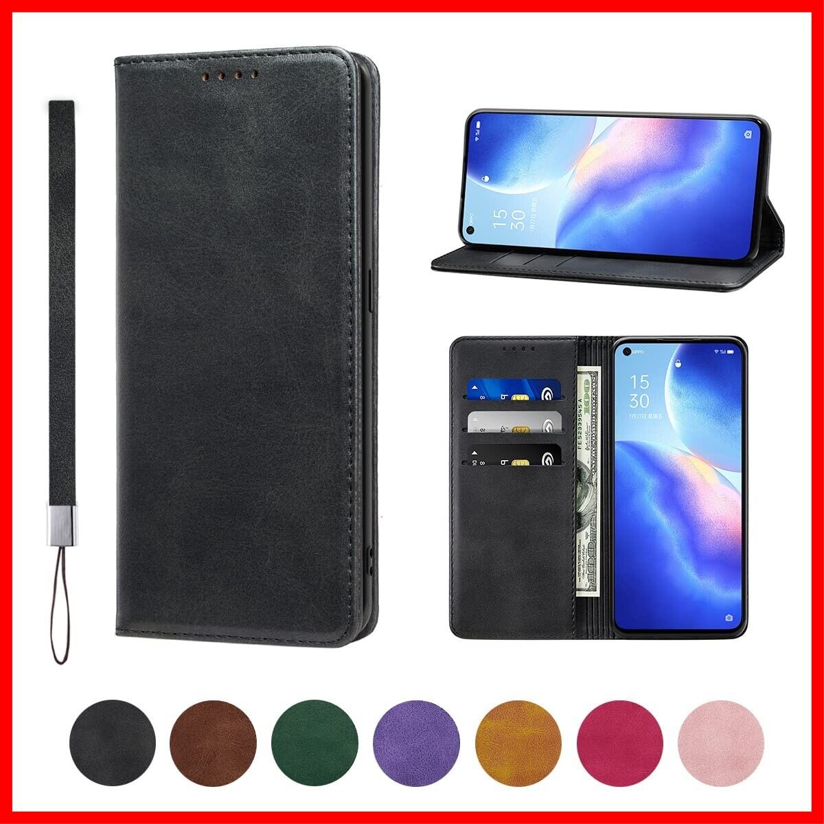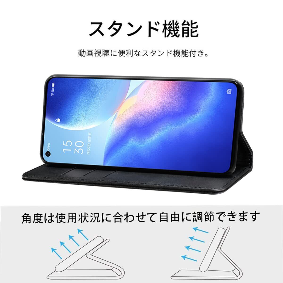 OPPO Reno 5A ケース 手帳型 高質PUレザー OPPO Reno 5A カバー 耐衝撃 オッポ Reno 5A 手帳 ケース 内蔵マグネット開閉式 ベルトなし スマホケース おしゃれ カードポケット スタンド機能 便利 スプラット同梱 携帯ケース(ブラック) | hananoki