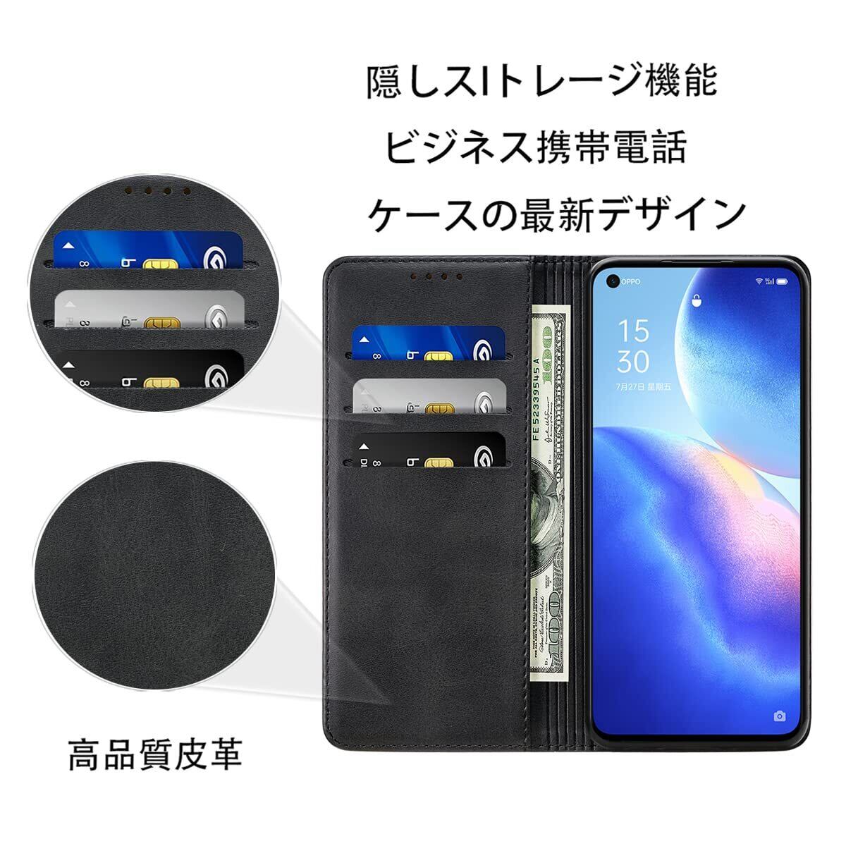 OPPO Reno 5A ケース 手帳型 高質PUレザー OPPO Reno 5A カバー 耐衝撃 オッポ Reno 5A 手帳 ケース 内蔵マグネット開閉式 ベルトなし スマホケース おしゃれ カードポケット スタンド機能 便利 スプラット同梱 携帯ケース(ブラック)