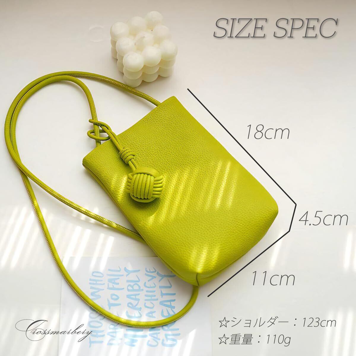 【素材】合成皮革 【サイズ】 横幅:11cm 高さ:18cm マチ:4.5cm ショルダー長さ:123cm 【重量】110g (チャーム含む) ※チャームは取外し可