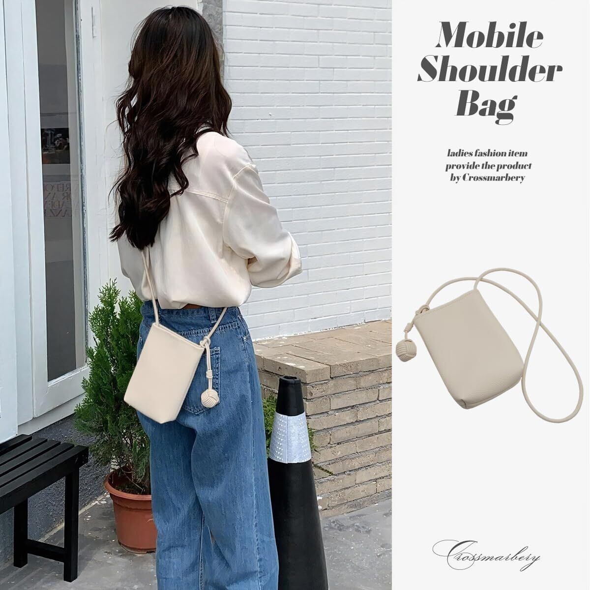 毎日のシンプルスタイルを、さりげなくオシャレにシンプルだけどどこか女性らしい薄型の斜めがけバッグが登場しました 小さめのモバイルショルダーは上品さと抜け感のある、大人可愛いカジュアルスタイルが◎ ショルダーストラップについたチャームが程よいアクセントになるので、ON/OFFどちらでもOK