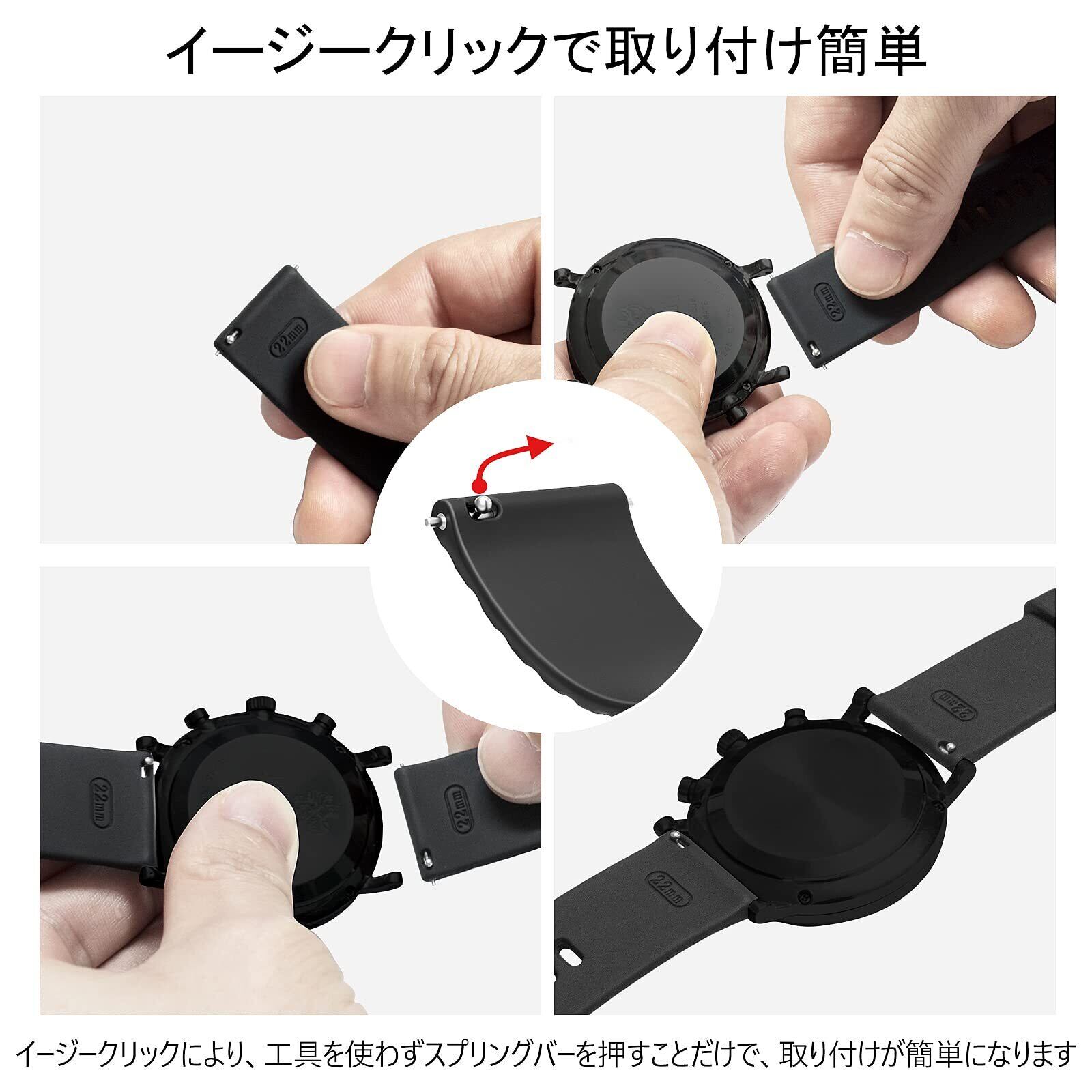 【取り付け簡単&防水性】本のシリコンバンドはクイックリリース製造プロセスを採用しているため、ツールなど一切必要はない。クイックリリース技術により、スプリングバーを押すだけで取り付けます。完全防水なので、日常生活だけでなく、プールや海などのマリンスポーツでも使用することができます。