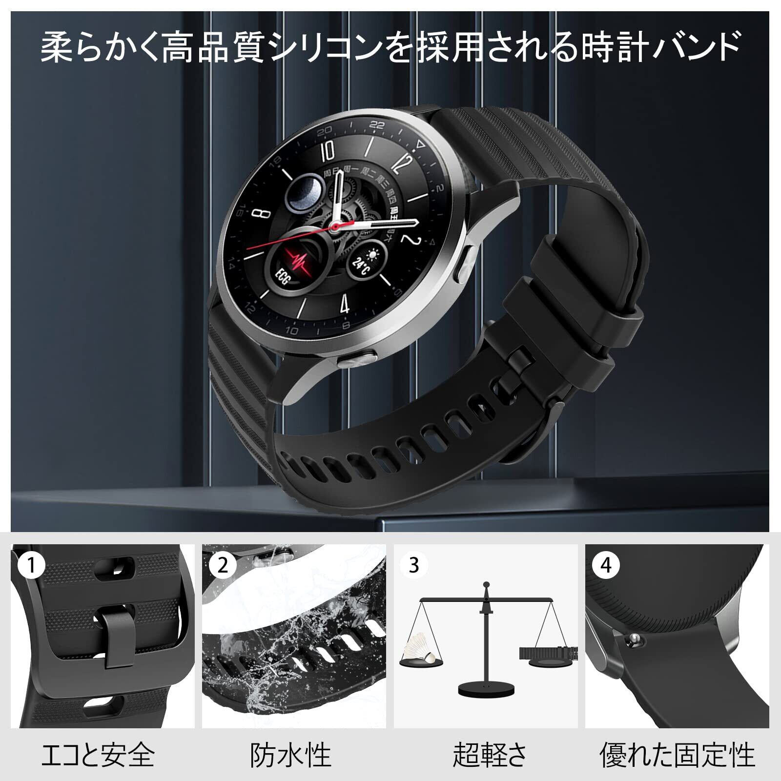 【環境にやさしく素敵な装着感じ】時計ベルトは高強度の環境にやさしいシリコン製です。 太陽の下での黄変、可塑剤、油、汚れに強い、汚れに強い、手触りが柔らかく、弾力性があり、柔らかく快適です。ラバー特有の嫌な臭いもなく、質感や手触りに優れ、柔軟性と強度を兼ね備えています。