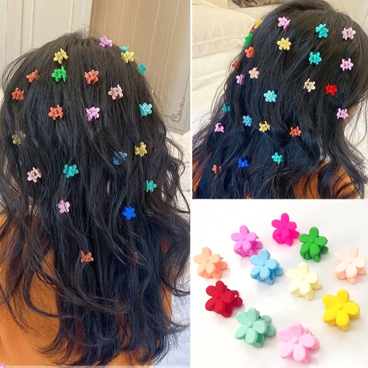ミニサイズの花型ヘアクリップです。色が鮮やかでとても可愛いです。