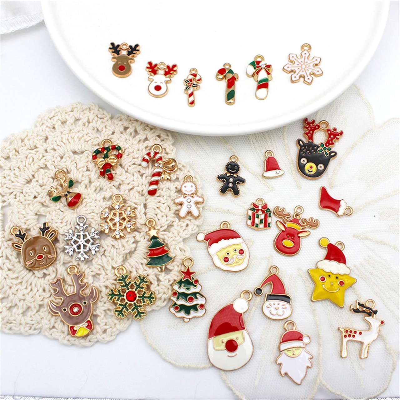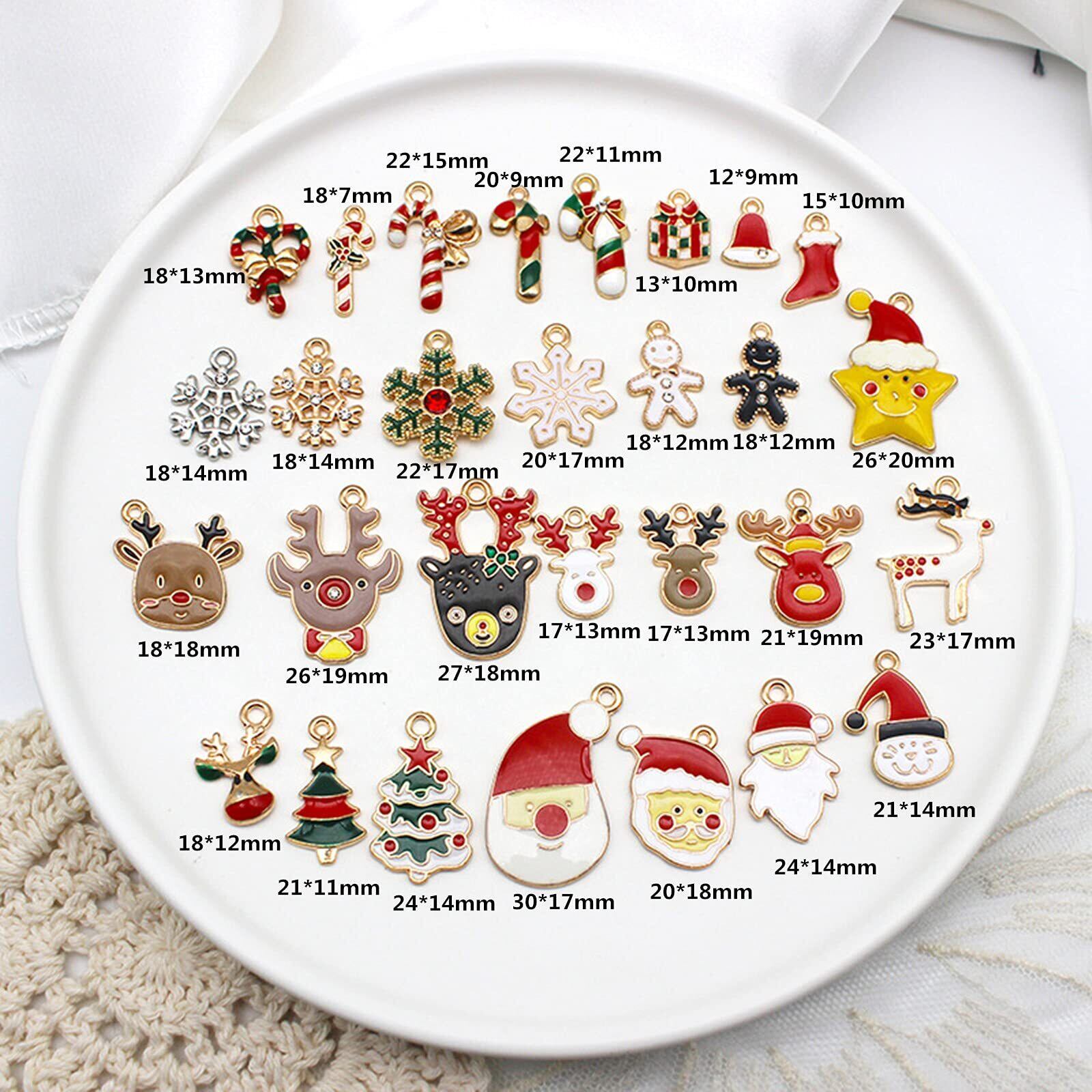 クリスマスカラーのチャームはクリスマスシーズンに最適です。サンタクロース、雪の結晶、トナカイ、クリスマスツリー、キャンディケーン、星、ベル、ジンジャーブレッドマンなど29種類のデザインが揃っています。