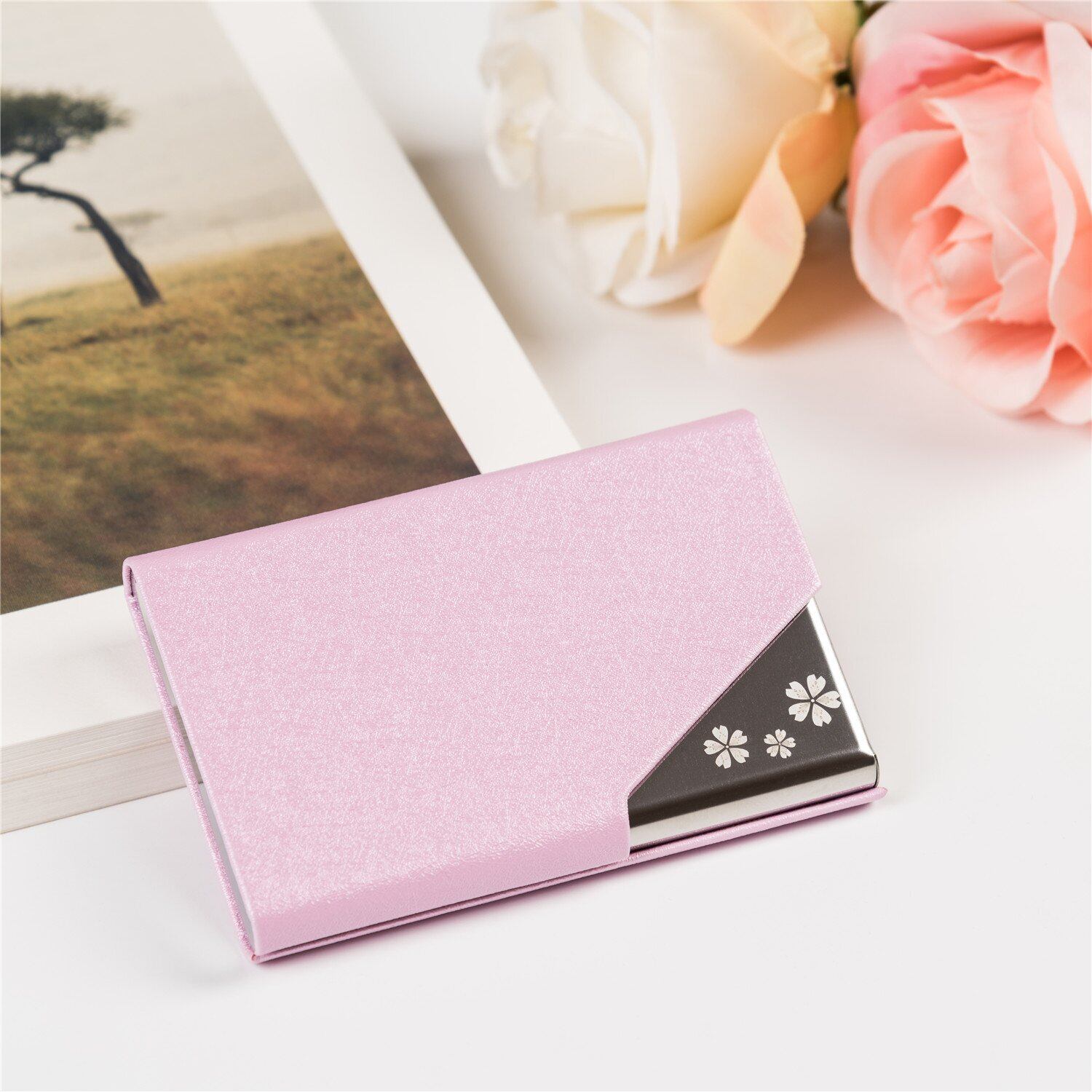 [Fukuhana] 名刺入れ メンズ レディース 合皮 薄型 選べる多色 名刺が折れない 専用の化粧箱が付き (桜ライトパープル)