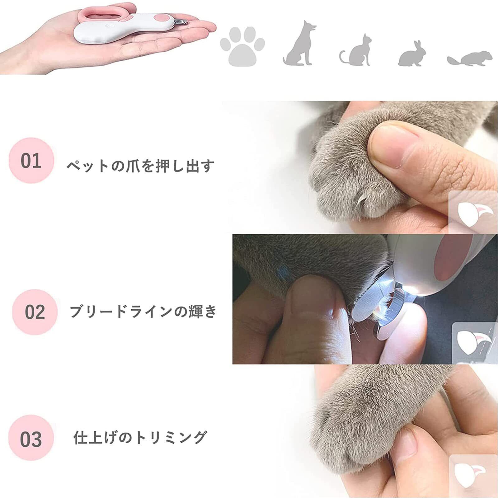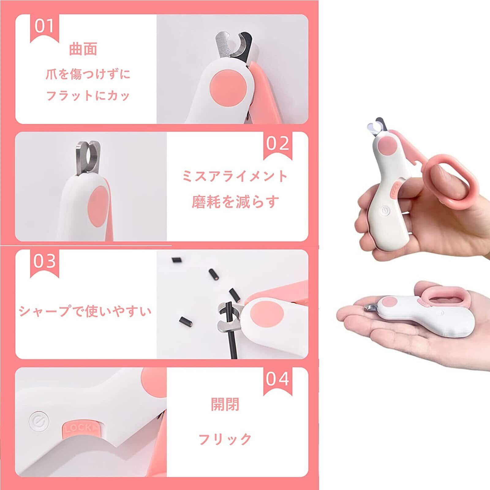 bennyue ペット爪切り ペット 高輝度LEDライト付き ペット用爪切り 割れ爪 巻き爪 ステンレス製 使いやすい 簡単 ストレスなくスパッと切れる ハムスター ウサギ 猫犬 爪切り