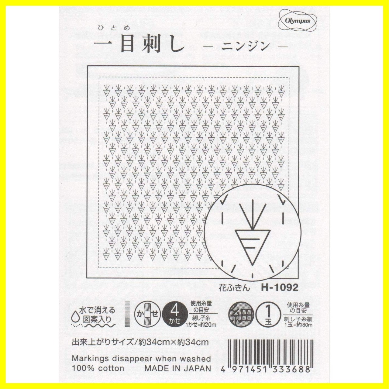 オリムパス製絲 刺しゅう布 『刺し子 花ふきん 布パック(白) ほんわかニンジン H-1092』