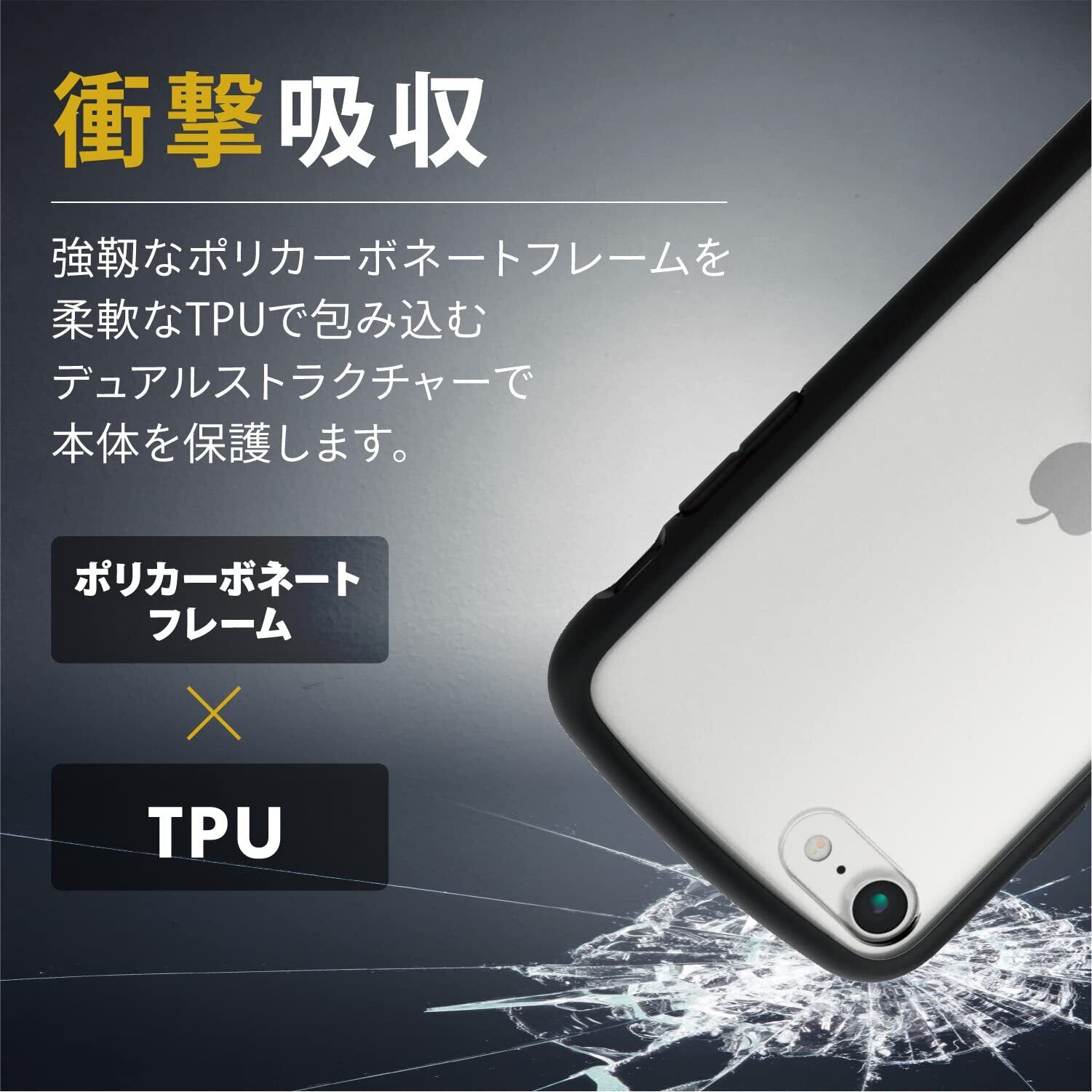 エレコム iPhone SE (第2世代/第3世代) / 8 / 7 用 ケース 耐衝撃 背面クリア TOUGH SLIM LITE ブラック PM-A22STSLFCRBK