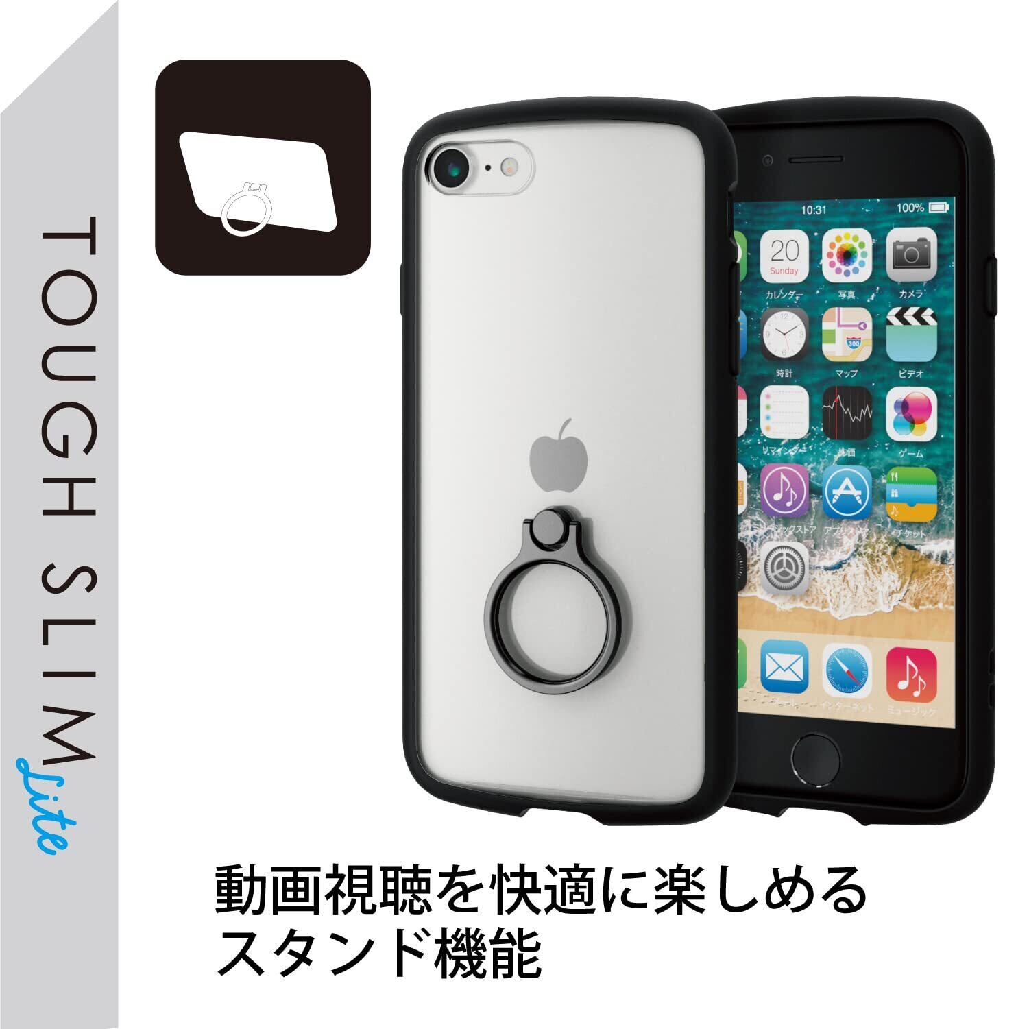 ■ 全周に配置した独自設計のエアクッションが衝撃を吸収し、背面には高硬度8Hの特殊樹脂を採用した落下防止リング付きのiPhone SE 第2世代/第3世代、iPhone 8、iPhone 7用TOUGH SLIM LITEケースです。