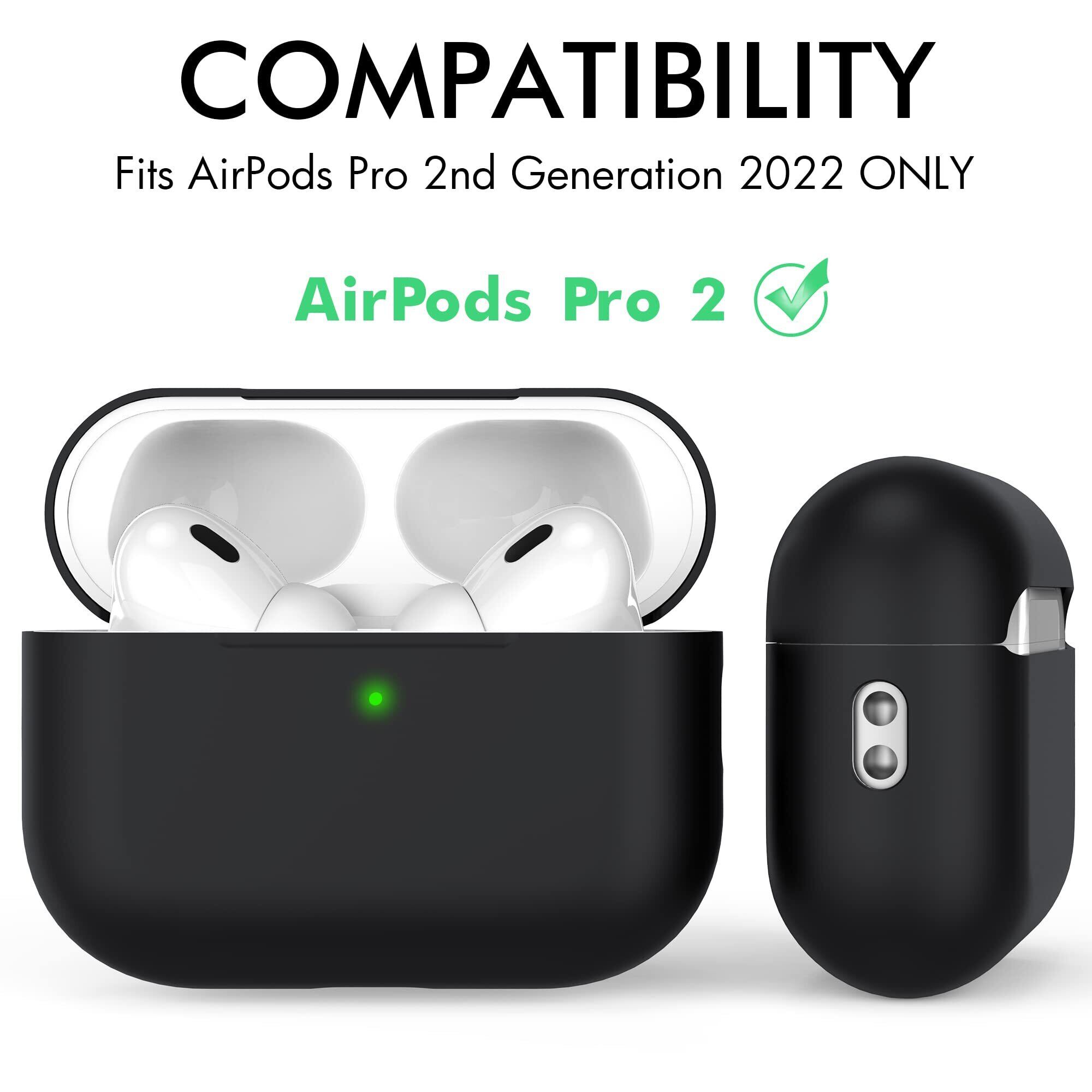 NIUTRENDZ 超薄型 Airpods Pro2 ケース シリカゲル保護カバー 分離式 LED可視 全面保護 落下防止 キズ防止 耐衝撃 防塵 Airpods Pro 第2世代(2022)用 (Airpods Pro 第2世代 Black)