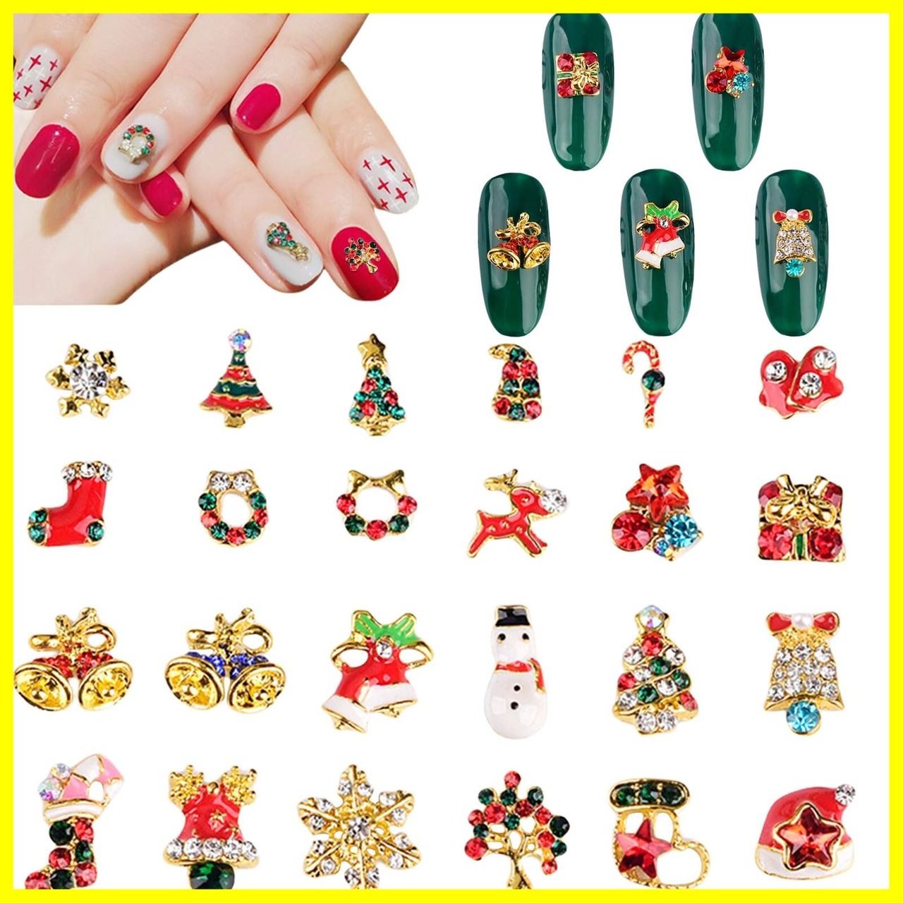 【クリスマスネイルパーツ】可愛い雪だるま、雪の結晶、クリスマスツリー、トナカイ、ベル、靴下などのネイルパーツがセットになって登場!クリスマスネイルを作りたい時に欠かせない。