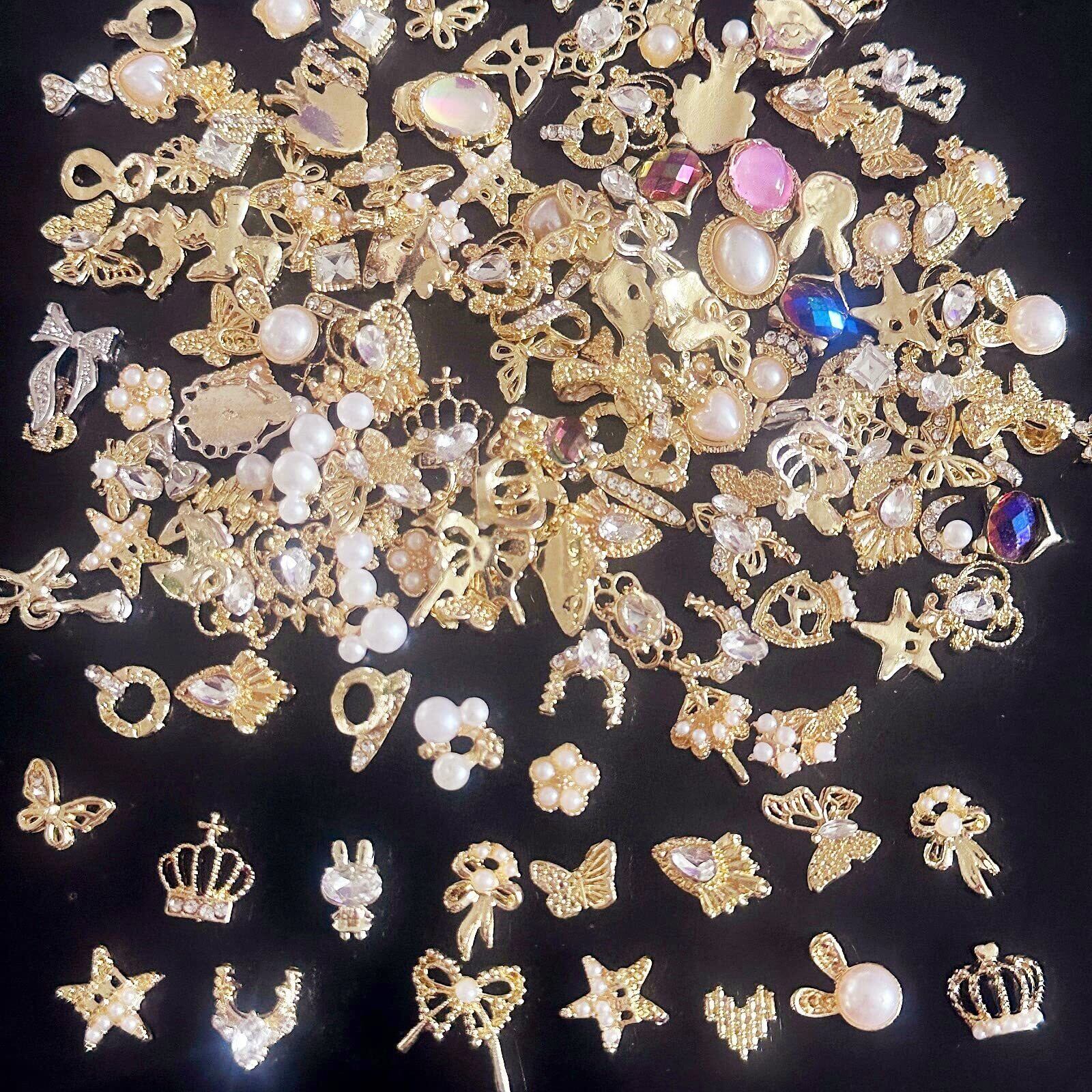 ネイルパーツ 約50個セット 3D 立体 リボン 蝶々 花 パール ハート ネイルパーツ ストーン キラキラ 大きめ ネイルアート パーツ メタルパーツ DIY ジュエリーパーツ 手芸 ハンドメイド デコパーツ ランダム形 (A)