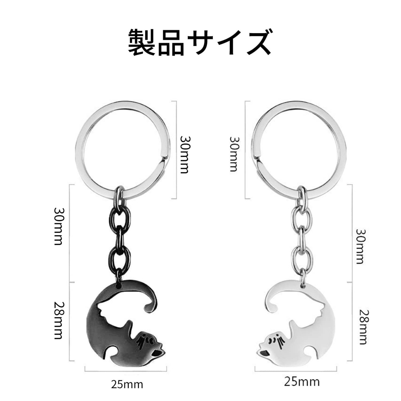【安全な素材】かわいい猫のカップルのキーホルダーは、腐食に強く丈夫なステンレス製です。 艶やかで明るく美しくスタイリッシュな、鍵やバッグを彩るキーホルダーです。