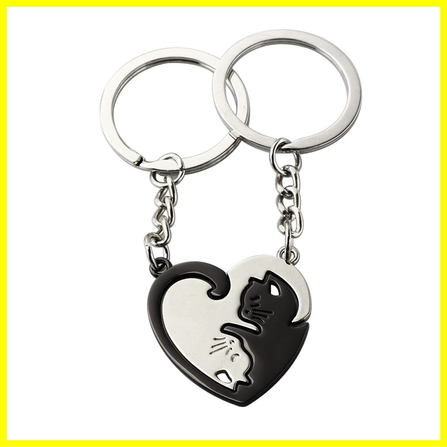 [Doyime] 猫 ペア キーホルダー カップル キーリングお揃い ハート型 ニコイチ プレゼント 記念日 可愛い