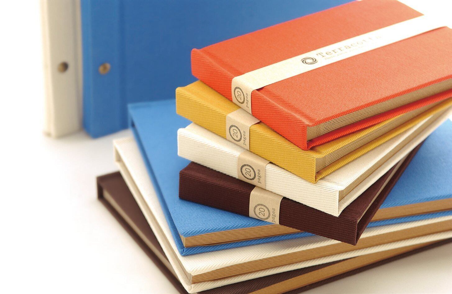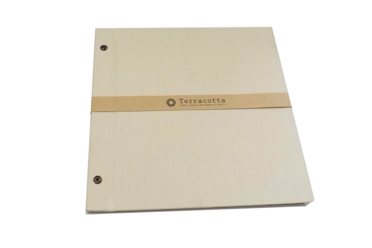 *Terracotta (テラコッタ)とは「焼いた土」という意味を持ち、「ぬくもり・親しみやすさ」をテーマに、素材感のある布地表紙とクラフト台紙を使用した雑貨スタイルアルバム。パーソナル・オフィス・店舗など幅広く使えるよう、シンプルなデザインに欧風カラーで仕上げた。